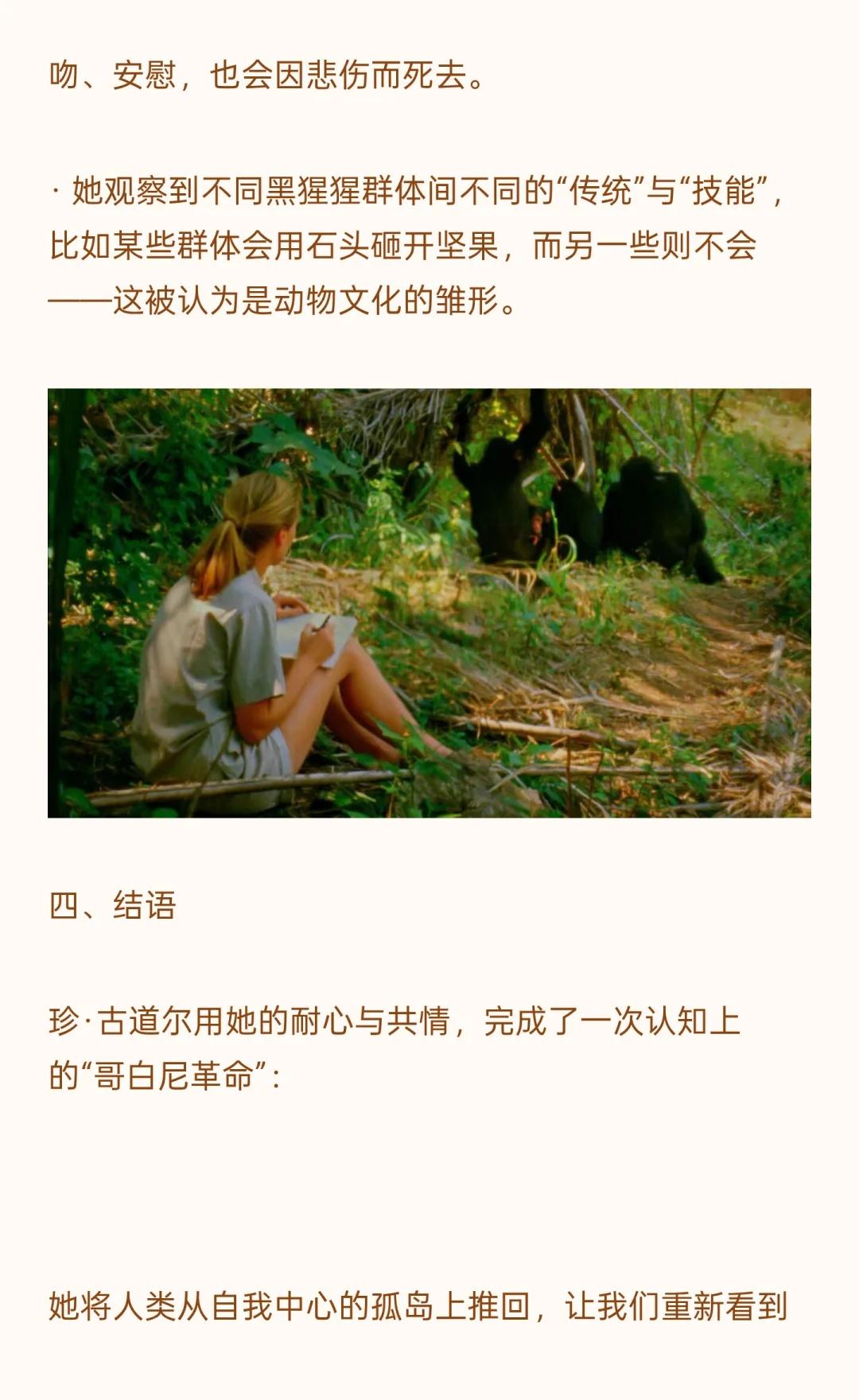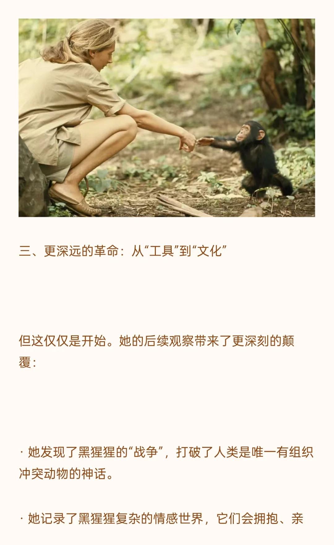 珍·古道尔:改写“人类”定义的奇女子 仅以此文缅怀教科书中激励过我们的传奇女性珍·古道尔(1934-2025) 注:文中图片来源于珍古道尔纪录片 生态女性主义 自然疗愈 珍古道尔 女性主义者 动物保护 环保 传奇人物 教科书人物 珍古道尔去世