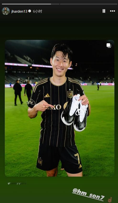 孙兴慜收到哈登球鞋,快船官方发布照片,哈登转发并