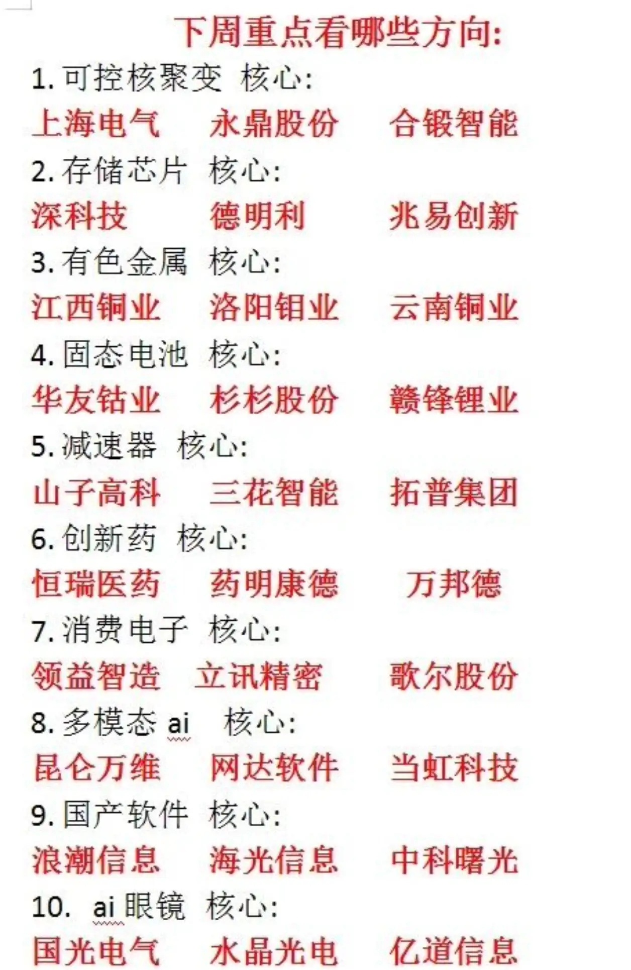 下周核心主线:“科技创新+成长制造”(可控核聚变、存储芯片、AI应用),同步关注有色资源防御、创新药估值修复!