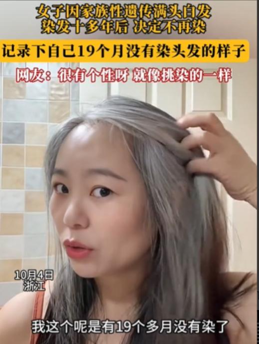 浙江一女子发现几根白发,她本以为拔了就是!万万没想到,仅仅几个月时间,她原本光亮顺滑的黑发,竟然全都变白发了!原来,她这是遗传性白发,家族里的人都有,她父亲甚至30岁头发就都白了,她有点自卑和焦虑,为此整整染了10多年头发,现在她决定不染了! 浙江杭州的林女士,35岁,一个看似普通的上班族,却隐藏着一个让她焦虑多年的秘密——她的头发几乎全部是白的。 起初,她只是偶尔在梳头时,发现几根散落的白发,心想“拔掉就好了”,可没想到,短短几个月后,原本乌黑亮丽的头发竟迅速被白发覆盖,这让她彻底慌了神。 林女士回忆起自己小时候的情景,发现家族里早发白发的情况非常普遍。她的父亲在30岁时,头发几乎全白,母亲和叔叔们也都早早出现白发。 原来,她的这份烦恼,早在基因里就已经埋下了伏笔。医生告诉她,她属于“遗传性早发白发”,这也是医学上常说的“少白头”现象。 很多人对白发的成因存在误解,认为拔掉白发就会越长越多,或是与营养不良、精神压力过大直接相关。 实际上,头发的颜色主要取决于毛囊中的黑色素细胞(即色素细胞)的活性。随着年龄增长,黑色素细胞逐渐减少,头发自然变白。 但在少白头的人群中,这一过程被“提前启动”,往往与遗传基因相关,而非单纯生活习惯问题。林女士的家族史正是一个典型例子。 林女士的焦虑不仅源于外观问题,也源于心理负担。她说,这十多年里,她几乎每个月都要去染发。 刚开始,她还小心翼翼地选择低刺激、植物型染发剂,染完头发,黑亮如初,总能带来几天的自信。 然而随着时间推移,她发现频繁染发不仅费时费力,头皮也开始出现轻微瘙痒,甚至有时会因为染发剂残留引起轻微过敏。她心里一直有个疑虑:长期染发,会不会对身体不好? 除此之外,林女士也不得不面对周围人的目光。她曾在一次同学聚会上被同学问到:“怎么头发越来越白了?是不是很累?” 这种善意的调侃,每次都让她的自卑感加重。她开始害怕被人关注白发,甚至不敢随意梳理头发或换发型。 心理学家指出,少白头患者在心理上容易产生焦虑、低自尊甚至社交压力,这种情绪又会反过来影响睡眠和生活质量。 最终,林女士在朋友的建议下去医院做了详细检查。医生告诉她,遗传性少白头通常不会影响身体健康,也不意味着身体提前衰老。 染发可以改善外观,但从健康角度看,并非必须。医生还强调,保持良好的生活习惯、均衡饮食、规律作息,适度运动,才能保证身体整体健康,而白发本身只是基因的表现,不必过度焦虑。 听完医生的话,林女士长长地舒了口气,她决定放下十几年的染发习惯,接受自然的自己。起初,她还试着慢慢减量染发,观察自己的心理和形象变化。 几个月后,她发现头发全白虽然引人注目,但自己已不再像以前那样焦虑。反而,白发让她看起来沉稳、大气,一种天然的成熟感悄然流露。 为了适应白发带来的变化,林女士还开始注重发型和护理。她选择适合自己脸型的短发,用护发素和精油保持头发光泽;在化妆上增加暖色调,让肤色和白发形成柔和的对比。 慢慢地,她发现自己对外貌的自我认同感提升了,焦虑感也显著下降。心理学家指出,这种接受自我、调整心态的过程,是少白头患者改善心理健康的关键步骤。 科普专家也提醒公众:少白头虽然在视觉上明显,但大多数情况下并非疾病。它的发生与黑色素细胞数量、遗传基因以及少部分环境因素有关。 日常生活中,保持均衡饮食,补充蛋白质、维生素B族、微量元素锌、铜等营养物质,有助于整体头发健康,但不能保证白发逆转。 过度拔除白发不仅无益,还可能损伤毛囊,造成感染或毛发稀疏。