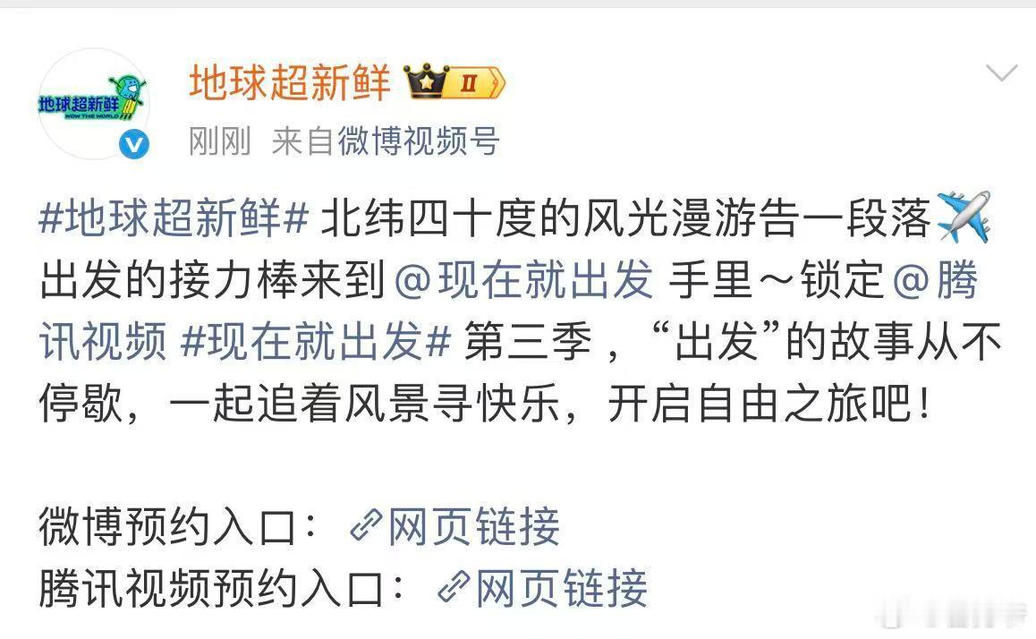 谁懂无缝衔接地球现发的爽感地球超新鲜 没想到《地球超新鲜》结束后,竟然能马上迎来现发!这无缝衔接的爽感真的是心动到不行。期待看到大家再次聚在一起,笑料满满!