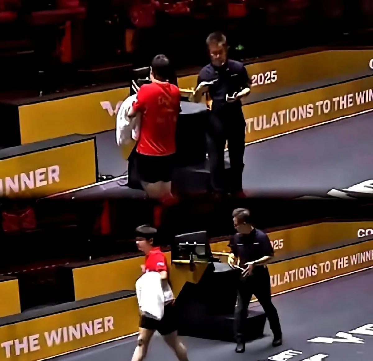 孙颖莎刚赢完,球拍就被裁判拿走了。 不是针对她,是冠军都得交。 王曼昱的拍子也在后台被抽,只是没人拍。 WTT新规,从10月1号起,冠亚军球拍必须过检,胶皮厚不厚、有没有猫腻,全得验。 不交? 罚钱。 她愣了两秒,笑了,把拍子递过去。 不是委屈,是习惯了。 她微博发了张新拍子,叫“小红”,备用的。 体能教练站旁边,俩人笑得跟刚打完乒乓球的高中生一样。 球迷说:顶峰的代价,是多备一块拍。 其实哪有什么主场哨。 裁判是外国人,回放是国际派的,连拍子都得全球统一标准。 你以为是刁难,其实是公平。 她没喊冤,也没哭。 只是继续练,像往常一样。