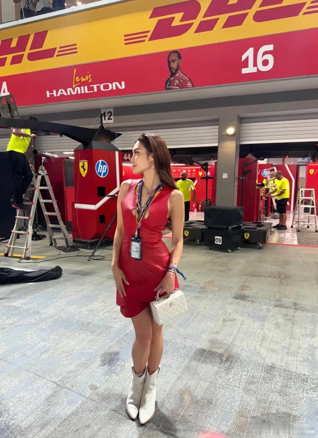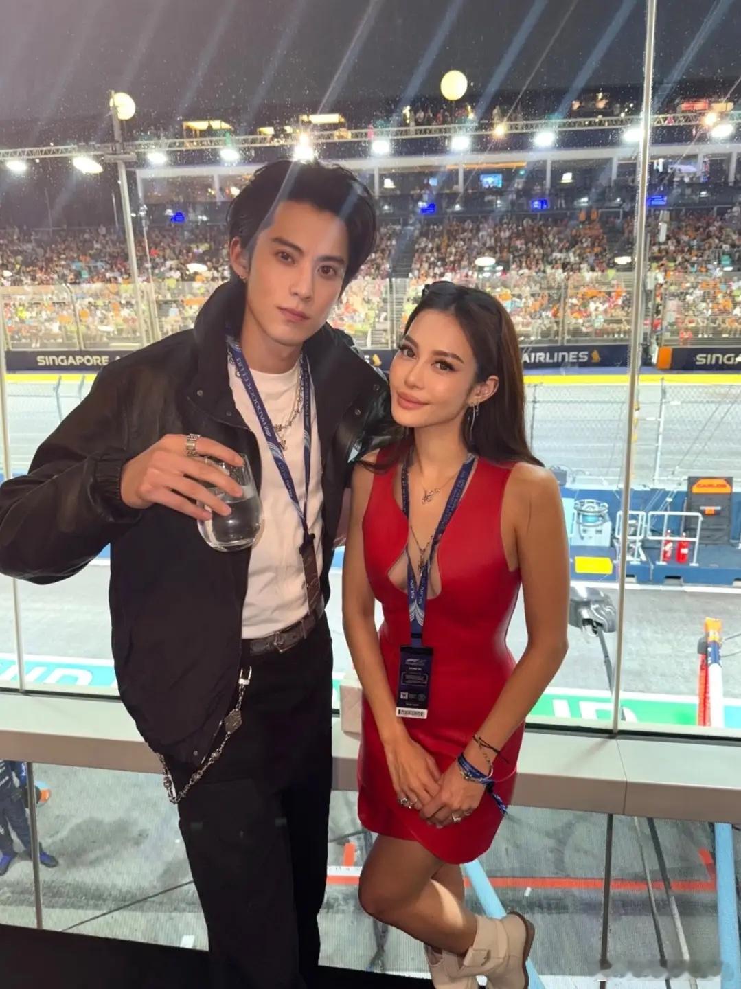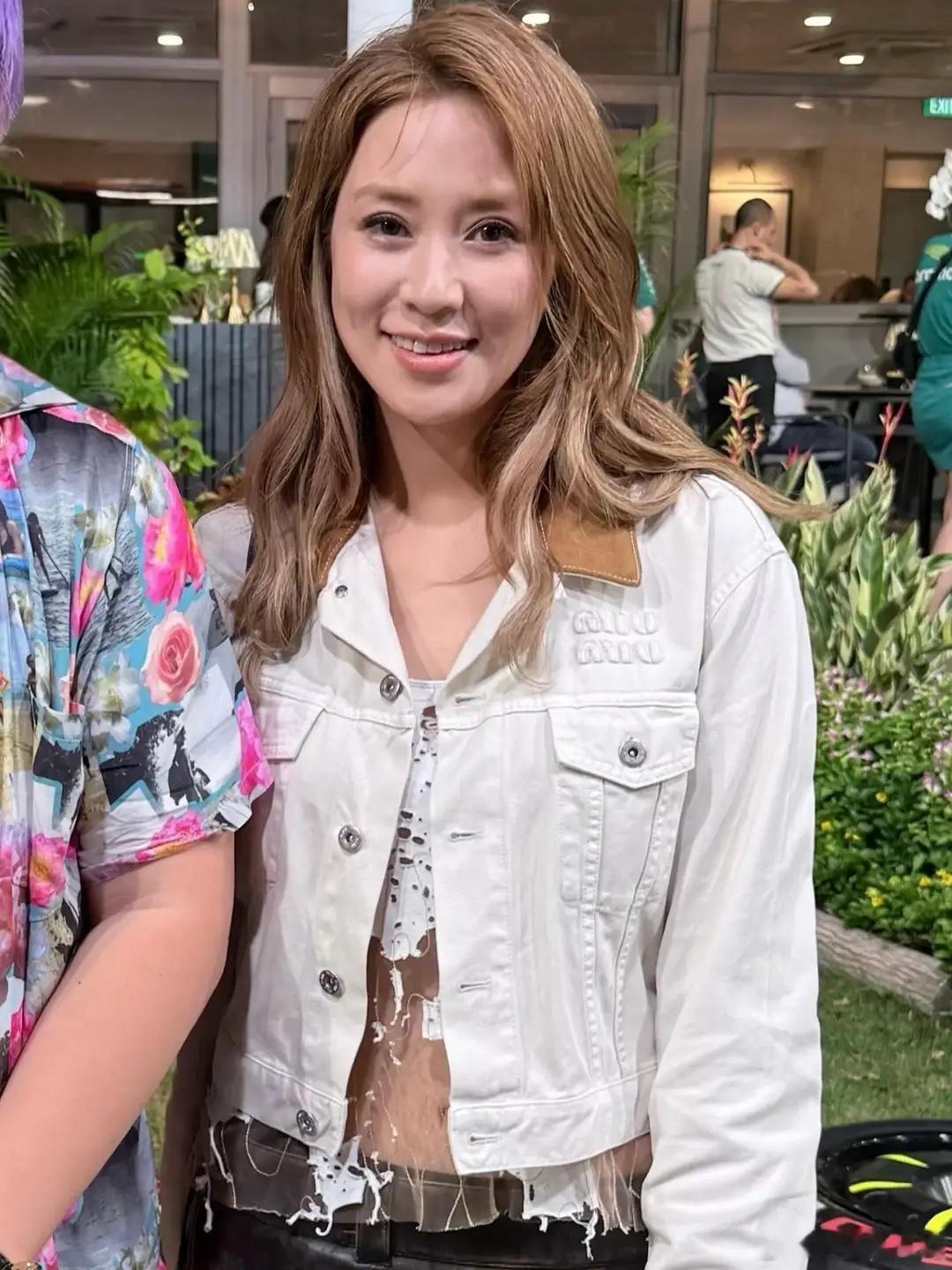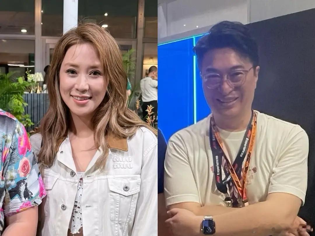 徐子淇和老公李家诚看F1赛车,穿露腰辣妹装减龄显年轻,不像42岁!
