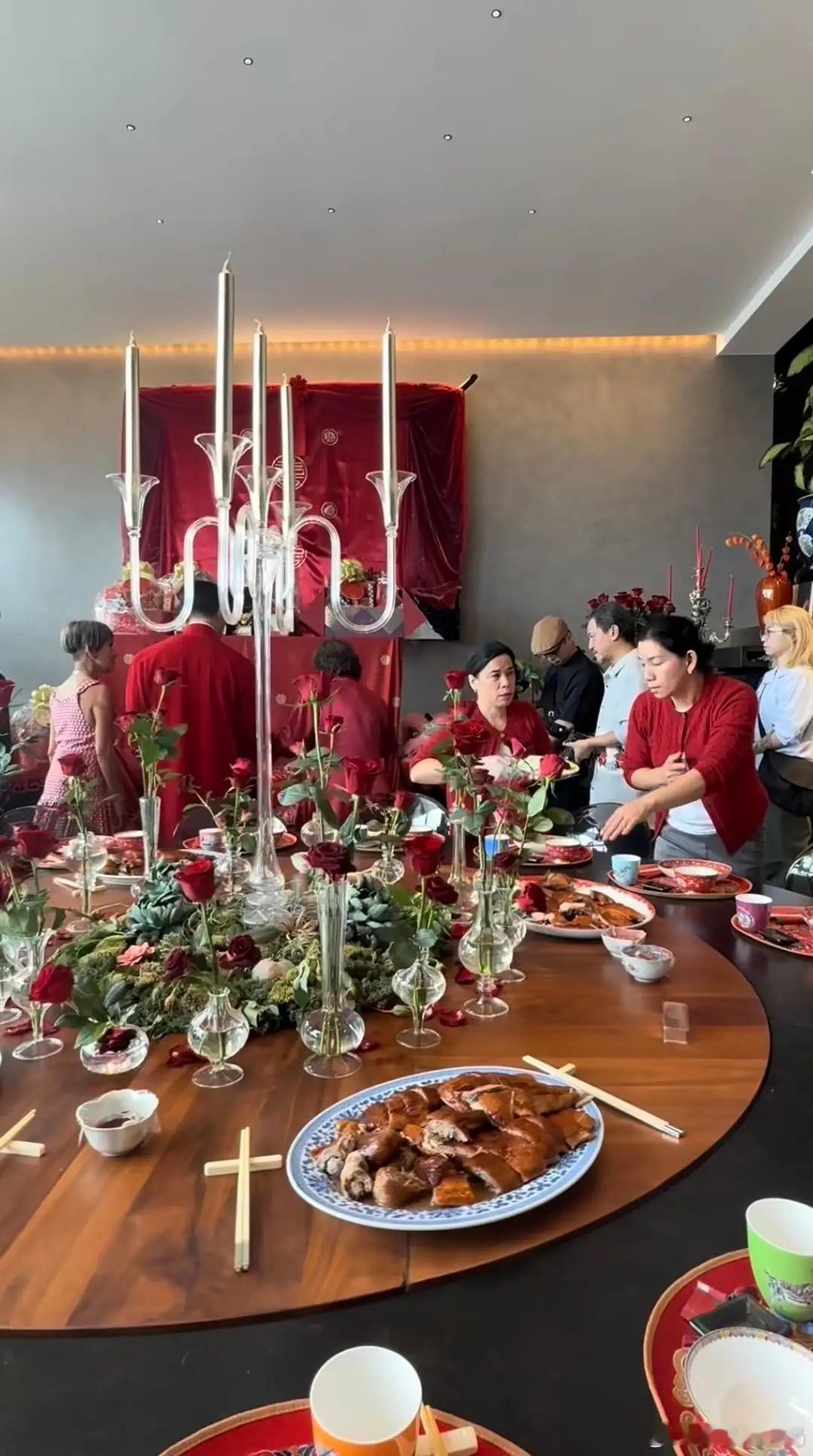 利孝和夫人外孙女过大礼,豪宅内满是囍字好喜庆,父亲穿了红长袍!