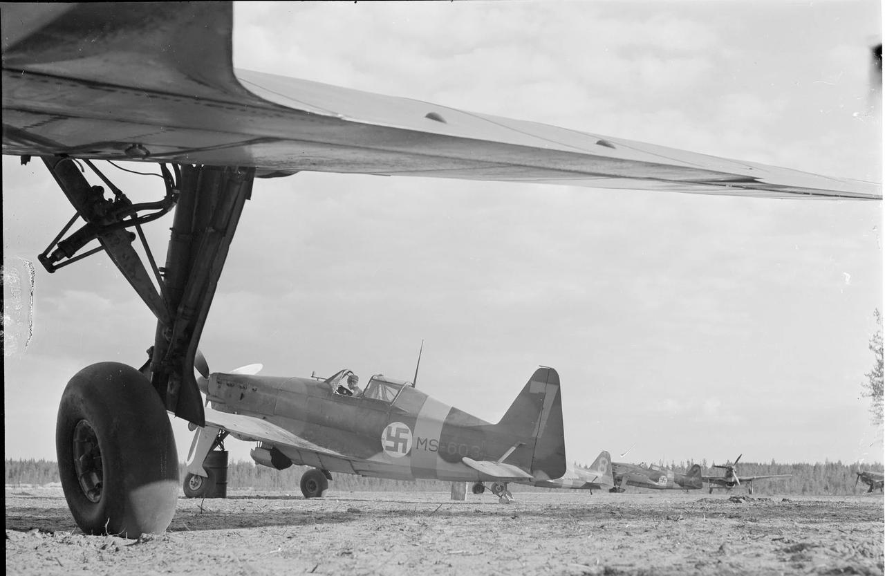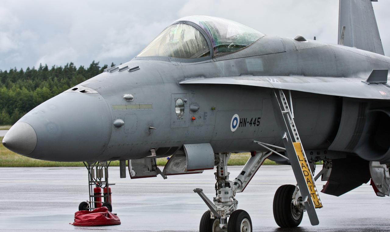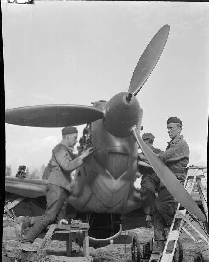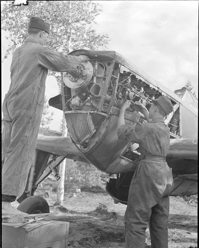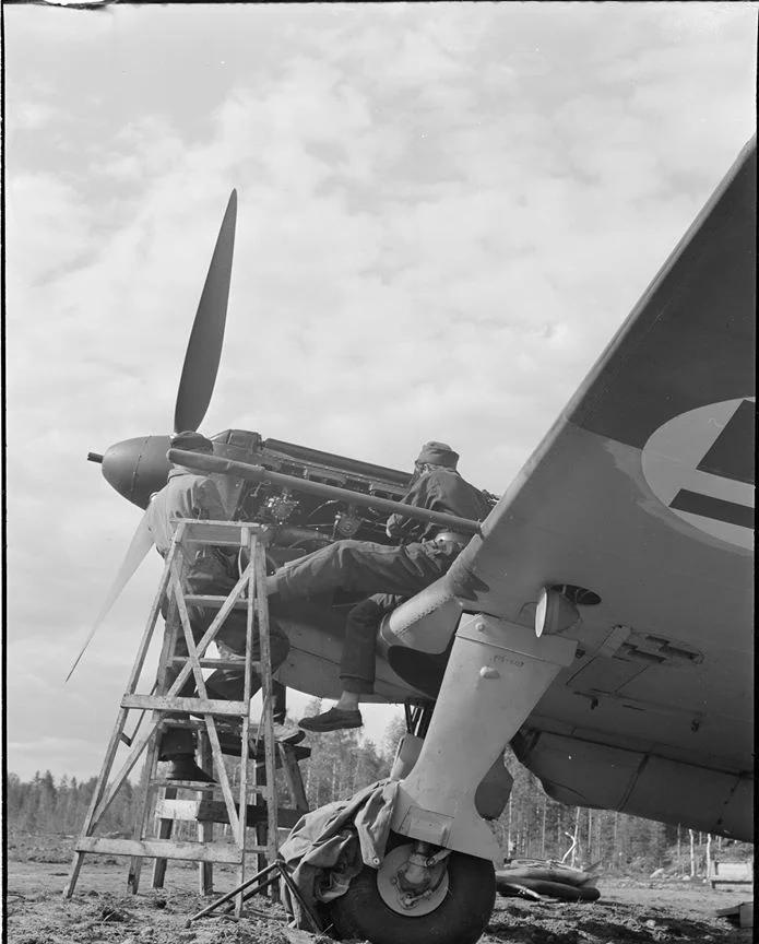 1941年6月28日,芬兰机械师正在纳拉瓦拉(纳拉湖畔)为法制 莫拉纳-索尔尼埃MS.406战斗机做起飞前的准备工作。 莫拉纳-索尔尼埃 MS.406战斗机(参见图5)是法国30年代末主力单翼战斗机,1938年首飞。该机配备20毫米机炮与7.5毫米机枪,最高时速485公里。芬兰在冬季战争期间从法国获得30架,后续通过德国缴获零件维持使用。 大家注意:机身上的卐字符并非纳粹标志。该卐字符源自瑞典伯爵埃里克·冯·罗森1918年捐赠给芬兰的首架飞机“图卢”号。芬兰空军1945年为避嫌改用蓝白蓝圆徽(参见图6,芬兰空军的F-18),2017年恢复传统卐字符作为荣誉象征。 芬兰空军标识与纳粹标识的区别:芬兰版为浅蓝色正卐字,纳粹为黑色斜卐字。