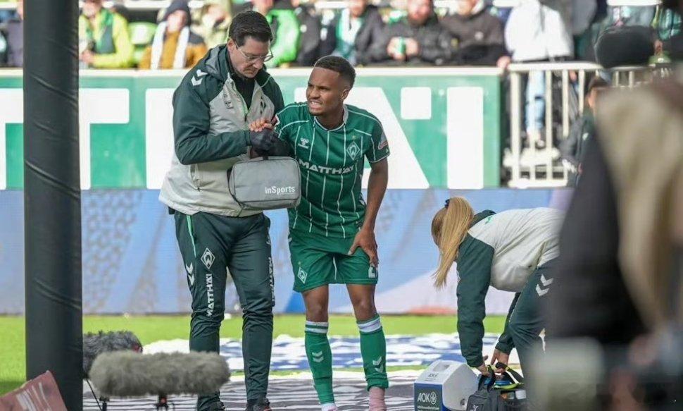 不来梅边路球员阿古在上轮比赛受伤提前下场,如今检查结果并不乐观,他左脚踝胫腓联合