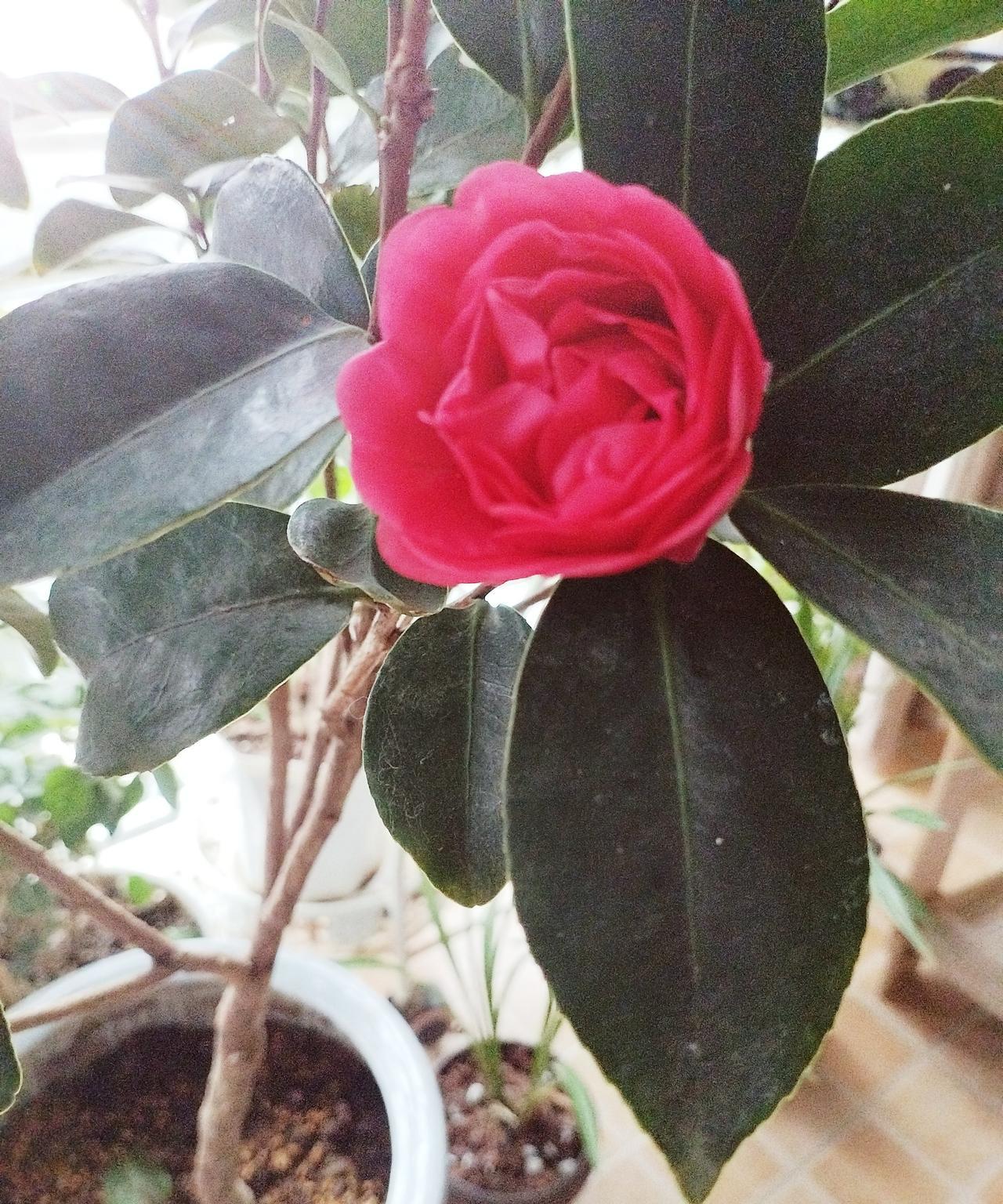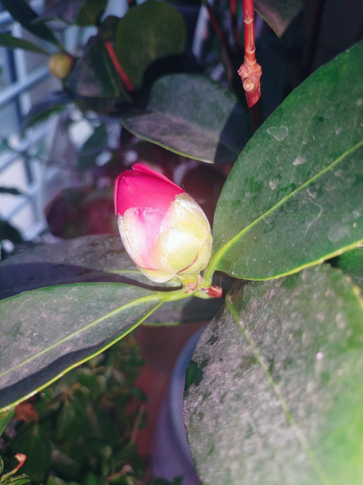 #晒晒露台的花#仲秋茶绽 阳台这株山茶,已伴我半载有余。三月阳春是它第一次绽放,彼时百花争艳,它却凭着艳而不妖的姿态,在花丛中占得一席之地,毫不逊色。 花期刚过没多久,枝桠间便冒出几十个米粒大的花蕾,我原以为很快能再赏花开,没承想这一轮孕育竟耗了三个多月。从细细小小的花苞到如今饱满得快要咧嘴,浇水、施肥、换土换盆,就连过密的花苞也得小心疏剪,每一步都不敢怠慢。 今日终于等来了第一朵初绽,看着枝头上那些鼓鼓囊囊的花苞,心里满是欣慰——所有的功夫都没白费。这抹娇艳的红,为我的仲秋添了不少喜庆。忽然觉得,养花倒像育人,既要悉心照料“衣食”,又得适时“修剪”枝丫,唯有这样用心,才能等到满心欢喜的收获。