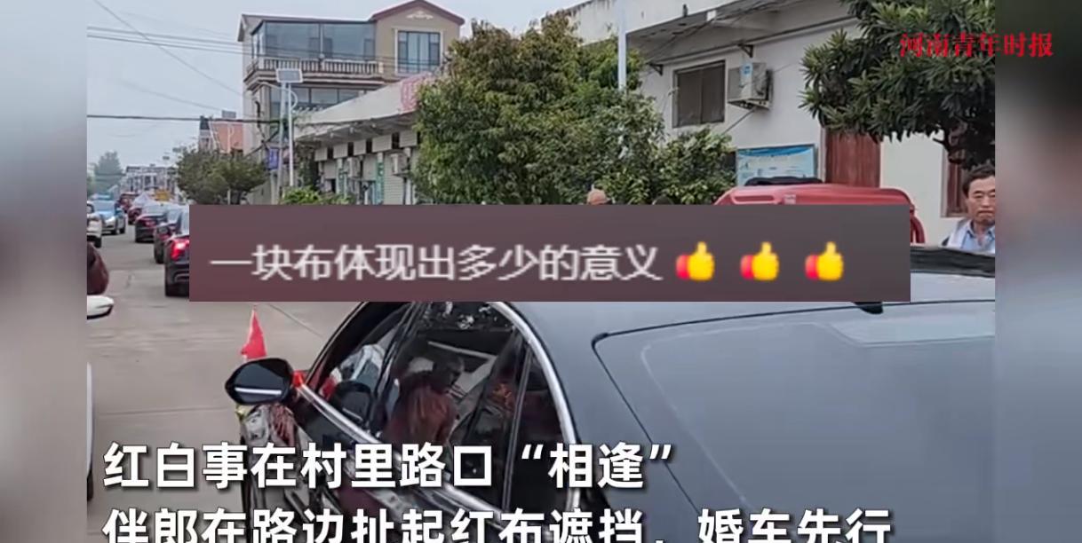 “人怎么能这么聪明!”10月4日,河南焦作,一婚车车队在前进过程中,突然遇到了一家正在办白事的,双方相遇后,白事家属主动愿意让婚车先行通过,而伴郎手上拿出一块大红布,直接站在路边遮挡,既给了办白事的家属面子,又不会影响喜事! 在我国虽然有一句话叫做“死者为大”,但是过去的时候大家一般都是步行,因此走在路上和现在的车队还是有很大不同的,尤其是办白事的时候,大家都是步行,但结婚却都是开车,因此现在和过去的不同也就能理解了! 据结婚人家的伴郎所说,他们当地的习俗就是伴郎在跟着的时候,会准备一块红布,没想到这次正好派上了用场,他们在路上前进时恰好遇到了一家在办白事。 在经过了协商之后,办白事的人家主动同意让婚车先过,而他们则在一旁等着,毕竟婚车是不能掉头的,而现在很多人也更愿意行个方便,毕竟人都已经去世了,就算在世的时候,想必也会让一下结婚这种喜事的。 而伴郎在路边站着的时候,还特意拿红色的布挡了一下花圈,这样一来既给人留了面子,又让自己这边的人不难看,可以说是很稳妥的一个做法了。 有网友表示社会总是在不断进步的,过去没有那么多婚车,大家一起步行在路上,那么让“死者为大”也是可以理解的,而如今反过来让结婚的先走,也就顺理成章了! 还有网友声称路上相遇的时候应该“红事先走”,桥上相遇的时候就是“白事先走”,毕竟逝者不抢“阳光道”,活人不抢“奈何桥”,这恐怕是只有我们中国人才懂的特殊文化! 信息来源:《红白事村里路口“相逢”,伴郎路边扯起红布婚车先行,拍摄者:白事主家同意了》四川广播电视台