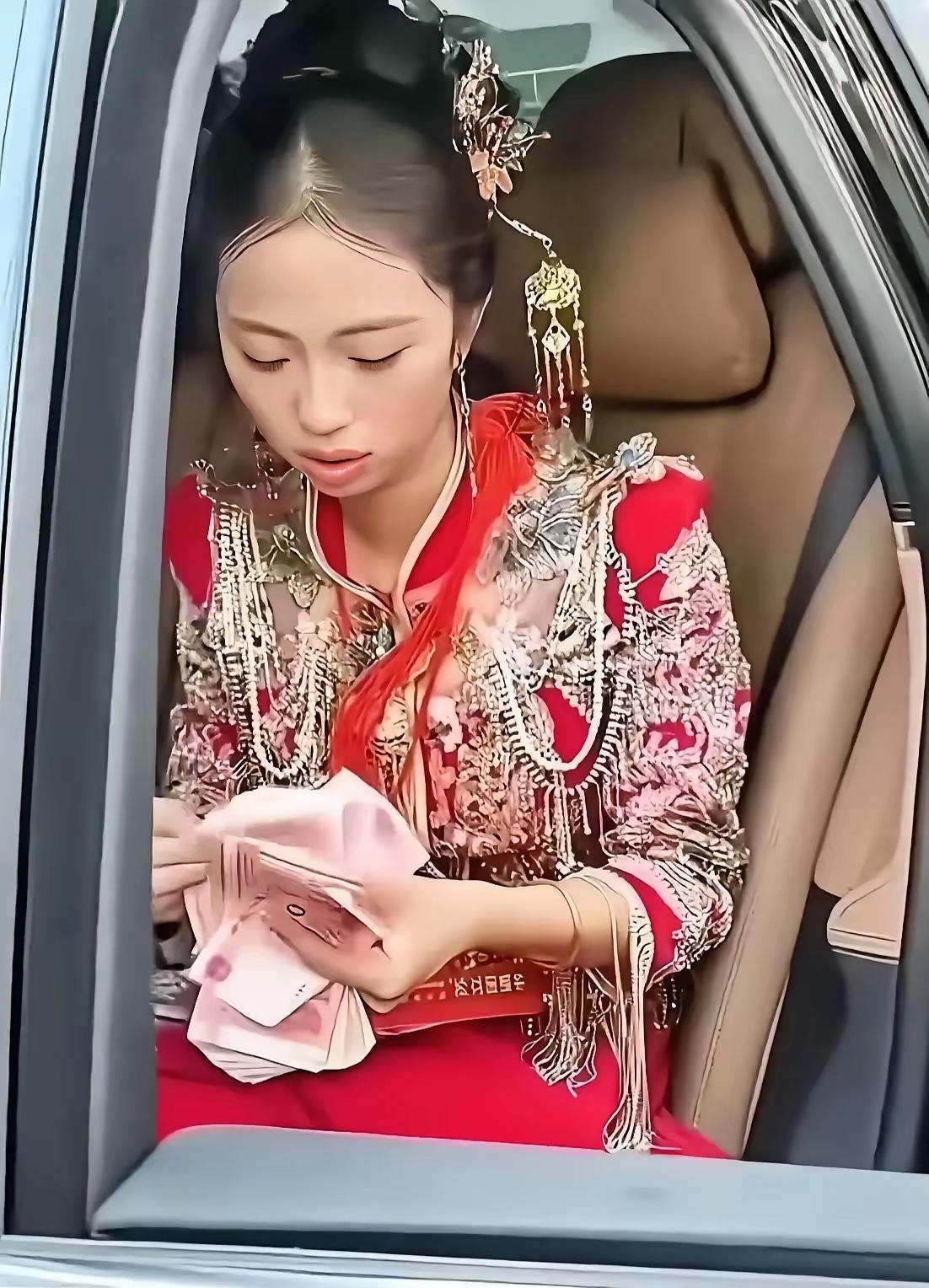 新郎着急拜堂成亲,新娘却坐在婚车内,一五一十,认认真真的数着下车费。看这样子,少
