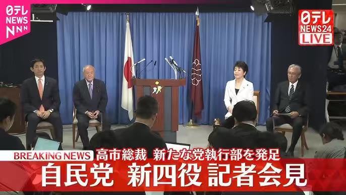 日本自民党新领导层登场!高市早苗总裁,麻生太郎副总裁!党四役:干事长铃木俊一(麻生派)、政调会长小林鹰之(原二阶派)、总务会长有村治子(麻生派)、选举对策委员长古屋圭司(原二阶派)!