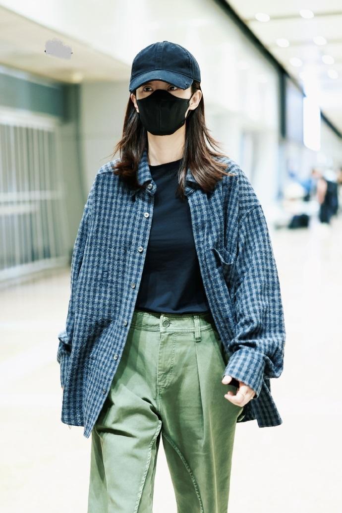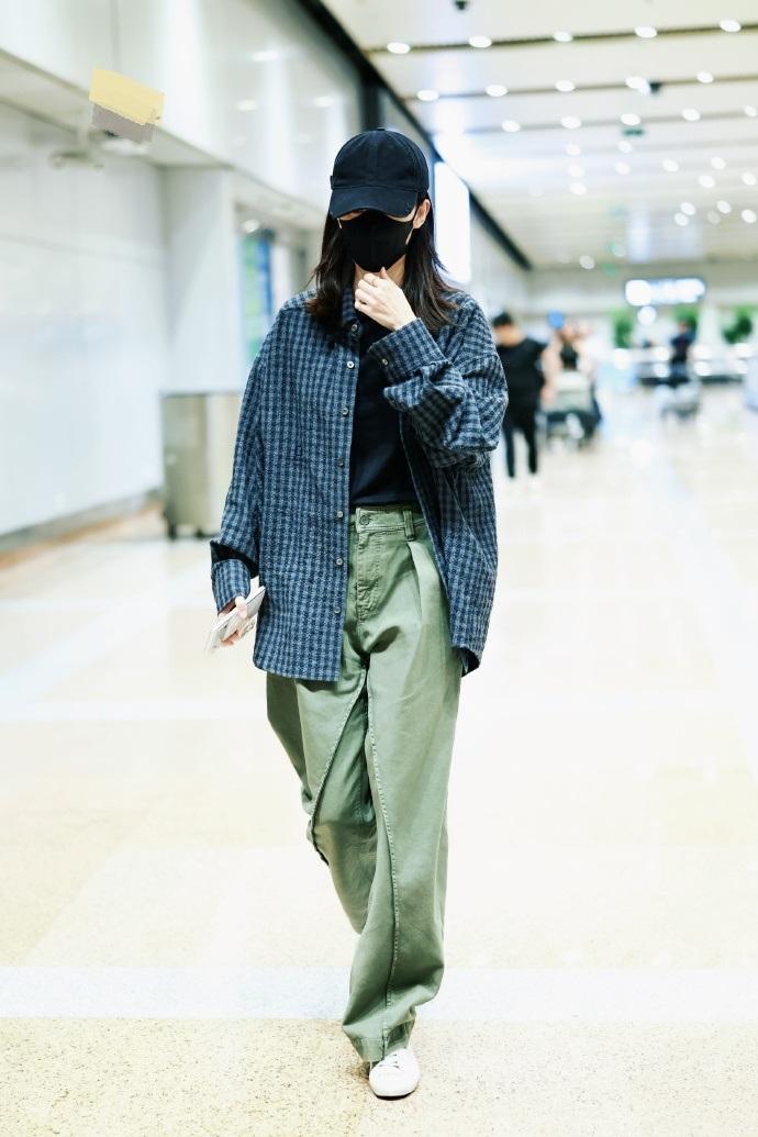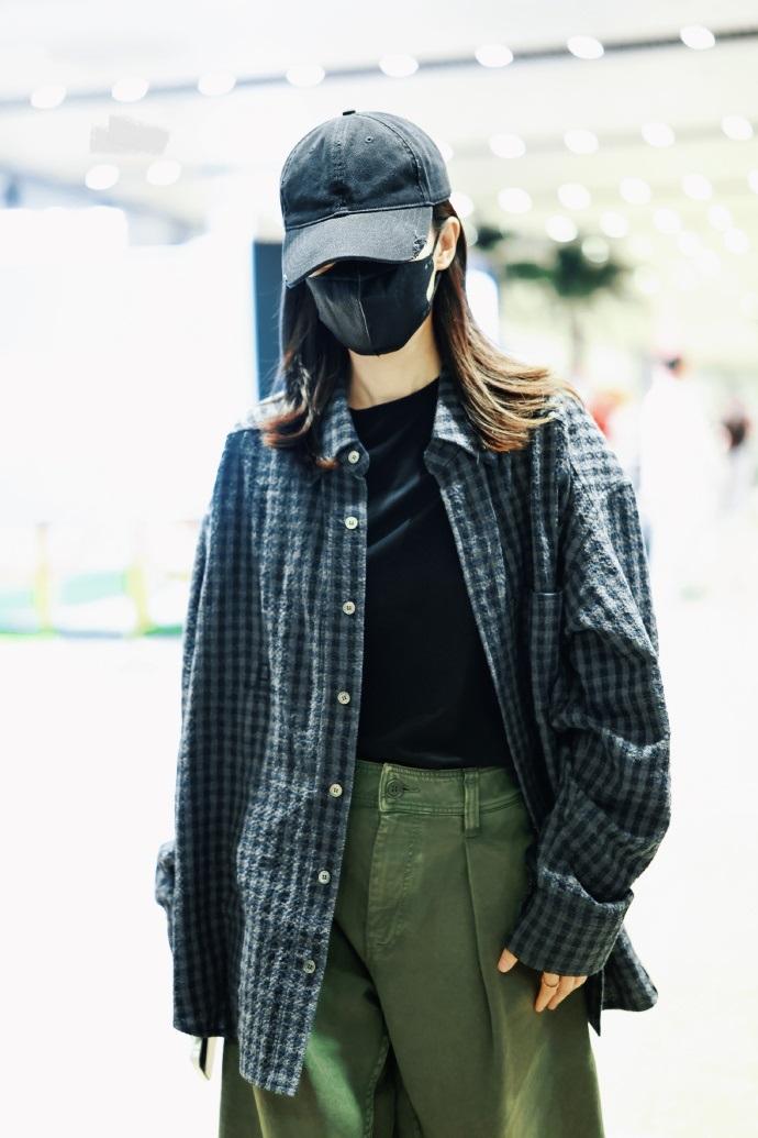 最近张小斐从时装周回国,她这次搭配的很随性,而且一点架子都没有,范儿显得很洒脱。 张小斐里面穿黑色打底衫,下身穿卡其色裤子,凸显出了很好的身材比例。 她穿的这件裤子很宽松,她穿上之后有种潇洒时尚的气质。 张小斐脚踩平底鞋,头戴黑色棒球帽,真的是太有潮流之美了。 她留着漂亮的披肩长发,尽显淑女风情,还戴着黑色的口罩,美如少女。 张小斐的身段也是极为苗条的,外面搭配一件灰色蓝色的格纹衬衣,彰显出一种随性不羁的魅力。