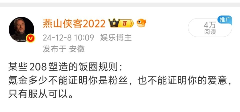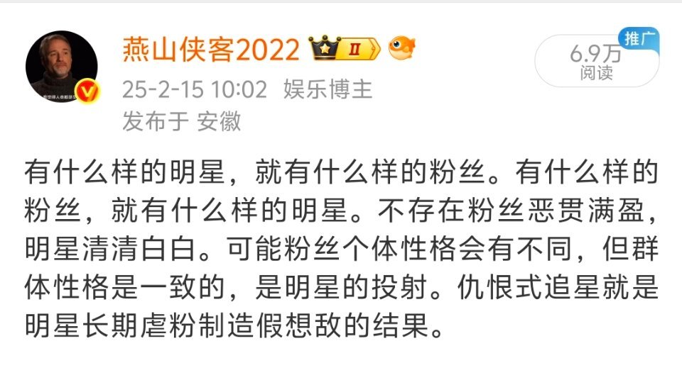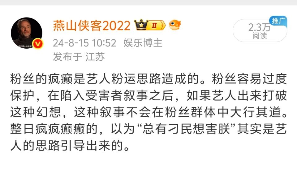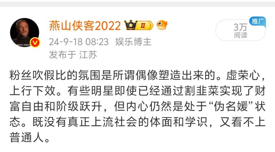 我的身份不由她们来认定。如之前所说,粉丝的习惯是被明星塑造出来的,是长期被引导的结果。每个月都会在她们脑海里注入“别有用心之人”“恶意”“带节奏”“引战”这些思想,再制造仇恨对象,完成受害者叙事。不存在粉圈恶贯满盈,明星清清白白。清朗应该清的是什么?是房间里的大象。