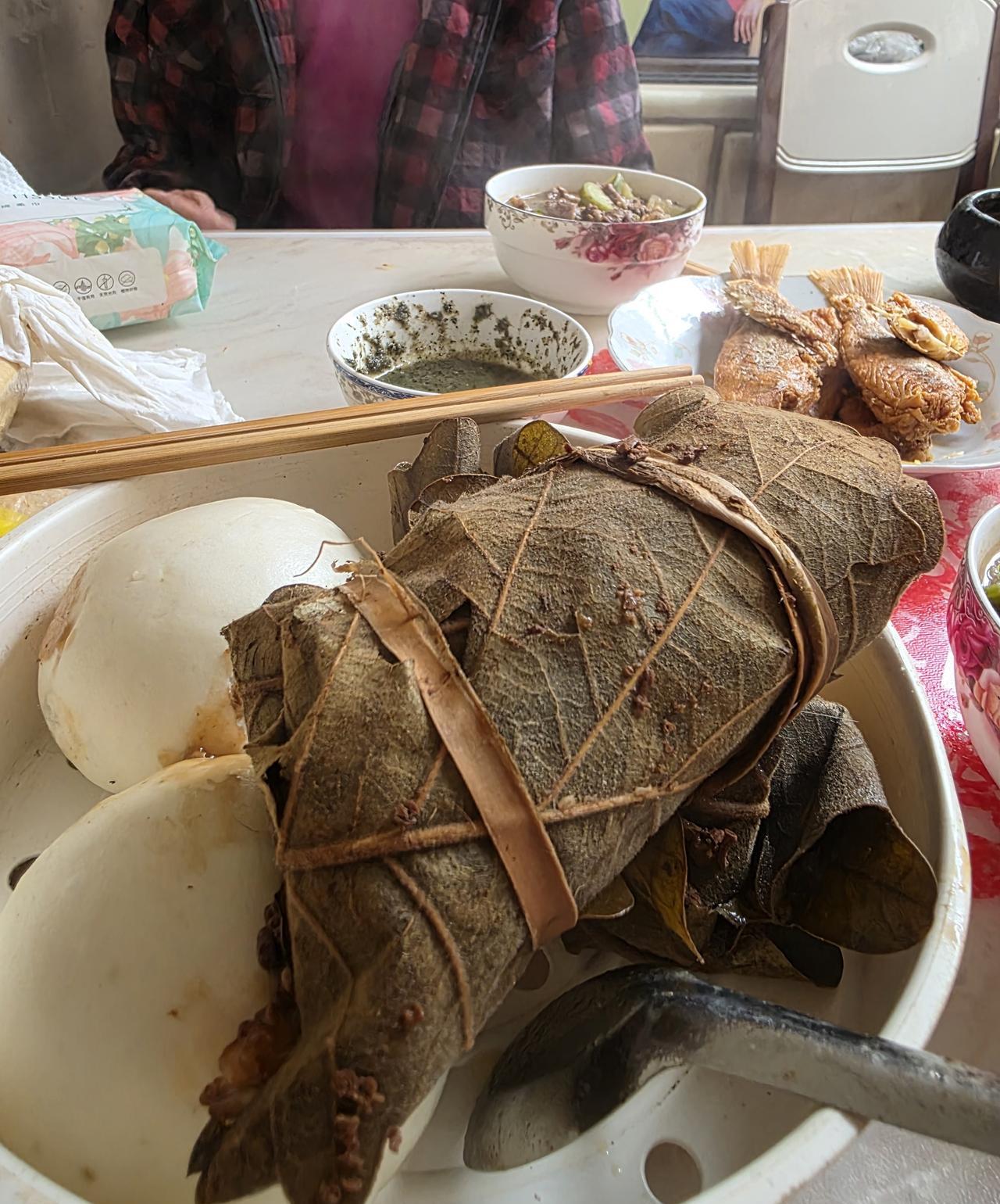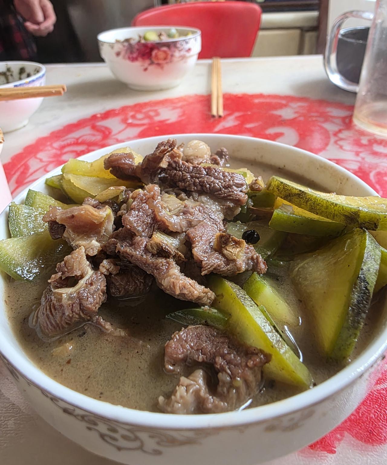 简简单单的中午饭…… 主菜是萝卜炖牛肉,副菜是咸鱼、辣椒、韭花酱,主食是干粮。