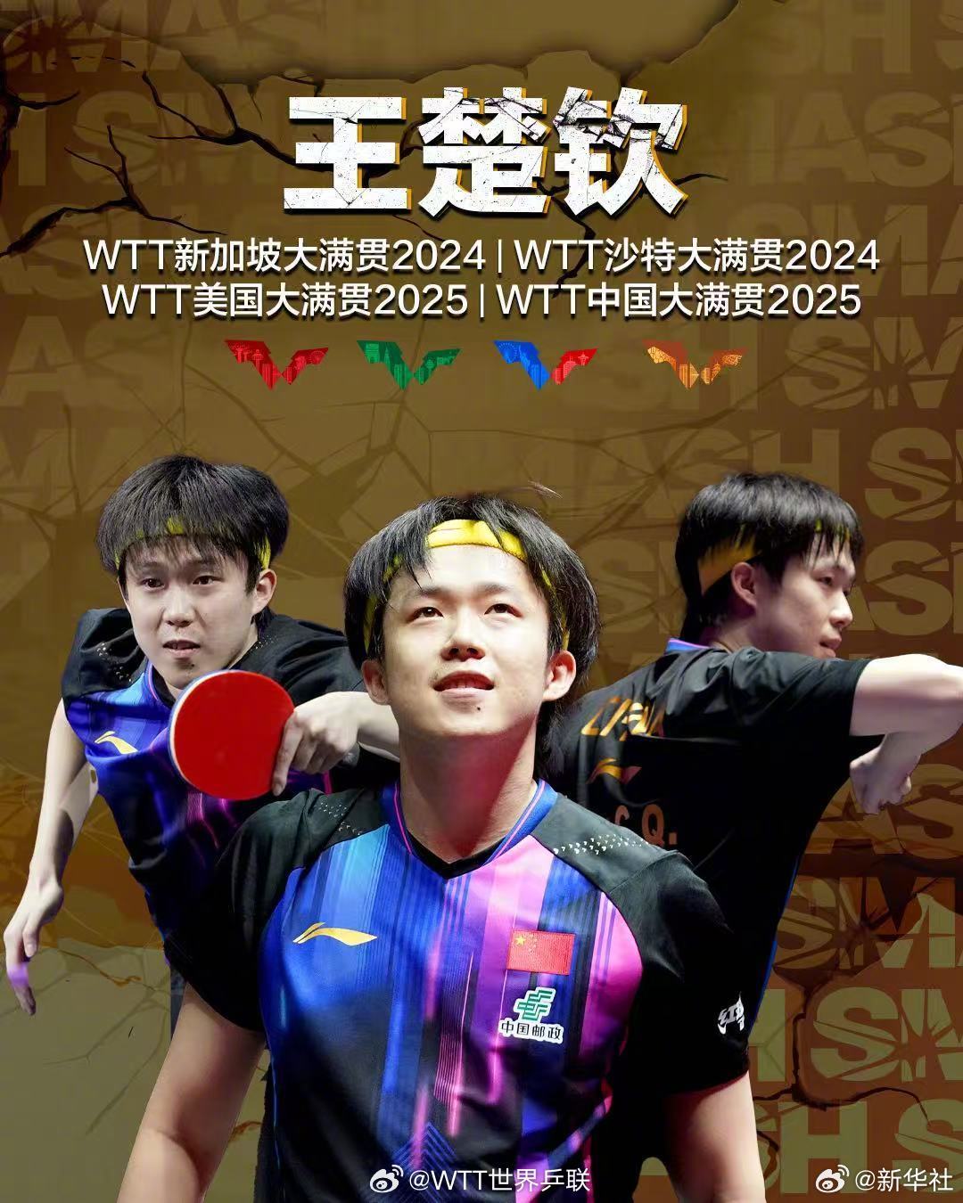 【恭喜!#王楚钦达成WTT大满贯单打4冠王#】#王楚钦解锁新成就#