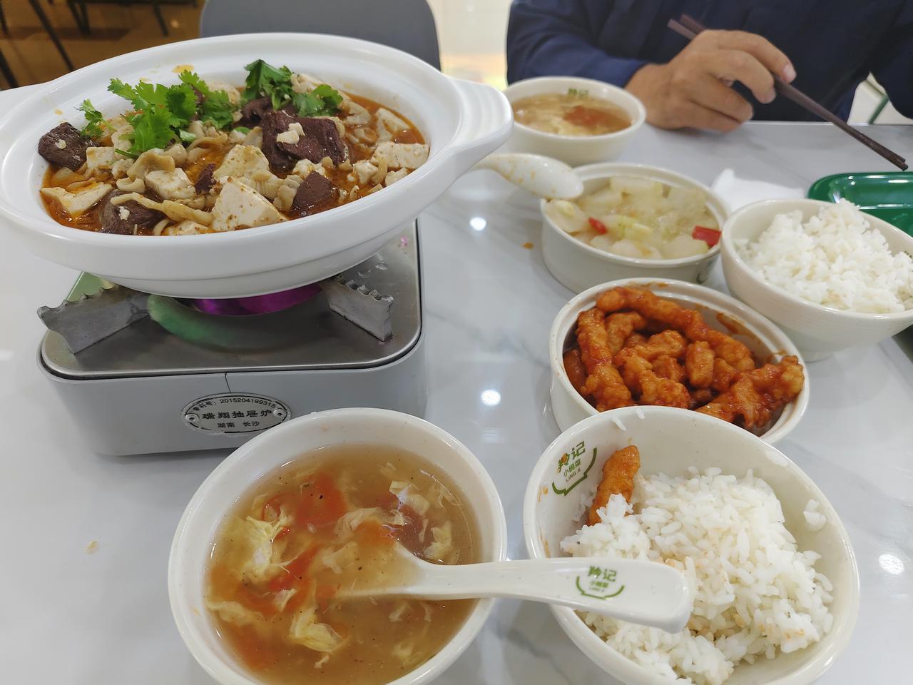 还是没有忍住 本来,我和老伴儿商量好了,今年国庆节和中秋节不出行了。谁知,中秋节全家吃完团圆饭,老伴儿对我说,郑州近日还是有雨,不如咱们找个周边不下雨的地方,呆上个三五天。我搜了一下,信阳市的新县近期无雨。尽管新县我们去过多次了,但是,闲来无事,还想去转转,并且我们约定只在新县呆着,不去景区,转转新县的乡村便是。 今天,早上8点钟开车离开家,走京港澳高速去往新县。可能是假期高速免费的原因,路上的车辆超多,我们到新郑服务区那真是一位难求。可是到了确山服务区,这里的停车场巨大,而且有超多的停车棚,服务区管理的很到位,有纯净水供应,还有免费的无线网络。如此胜地,不可错过。我们在这里泡上一壶茶,休息了一段时间后,才继续出发。 新县位于河南的最南端,走高速需要到湖北省境内转个圈,才能到新县,等我们转上和襄高速,这里的车少了许多,天气也露出了蓝色,高速穿行于群山之中,这便有了景致,随即也有了行走的乐趣。 我们从吴陈河站下站,直奔我们在网上预定的宾馆——新县宾馆。标间140元有免费的早餐。等我们到宾馆办好手续,已经是下午两点多钟了。这时,我们俩已经饿得是前心贴后心了。走先吃饭去,老伴说到。宾馆院内有一家新开业的湖南小碗菜餐厅。不出大门,就在这里了赶紧喂脑袋这才是重中之重。别说,这里的环境超优,工作人员的服务超棒。我们俩是中午最后来就餐的客人,好几个服务员给我俩服务,端汤的,盛米饭的,点火锅的,拿筷子递碗的,我们从来没有享受过这种待遇,除了受宠若惊之外,还有点不好意思了。 我们点了一碗糖醋里脊,一碗河虾冬瓜,要了一个罗山大肠汤锅。鸡蛋汤免费,米饭免费,如此丰盛的中餐我们只花了44元。对了,还有免费的月饼吃。这性价比没谁了吧? 下午,我们会在县城走走,寻找当年的新县印象。下次再见!