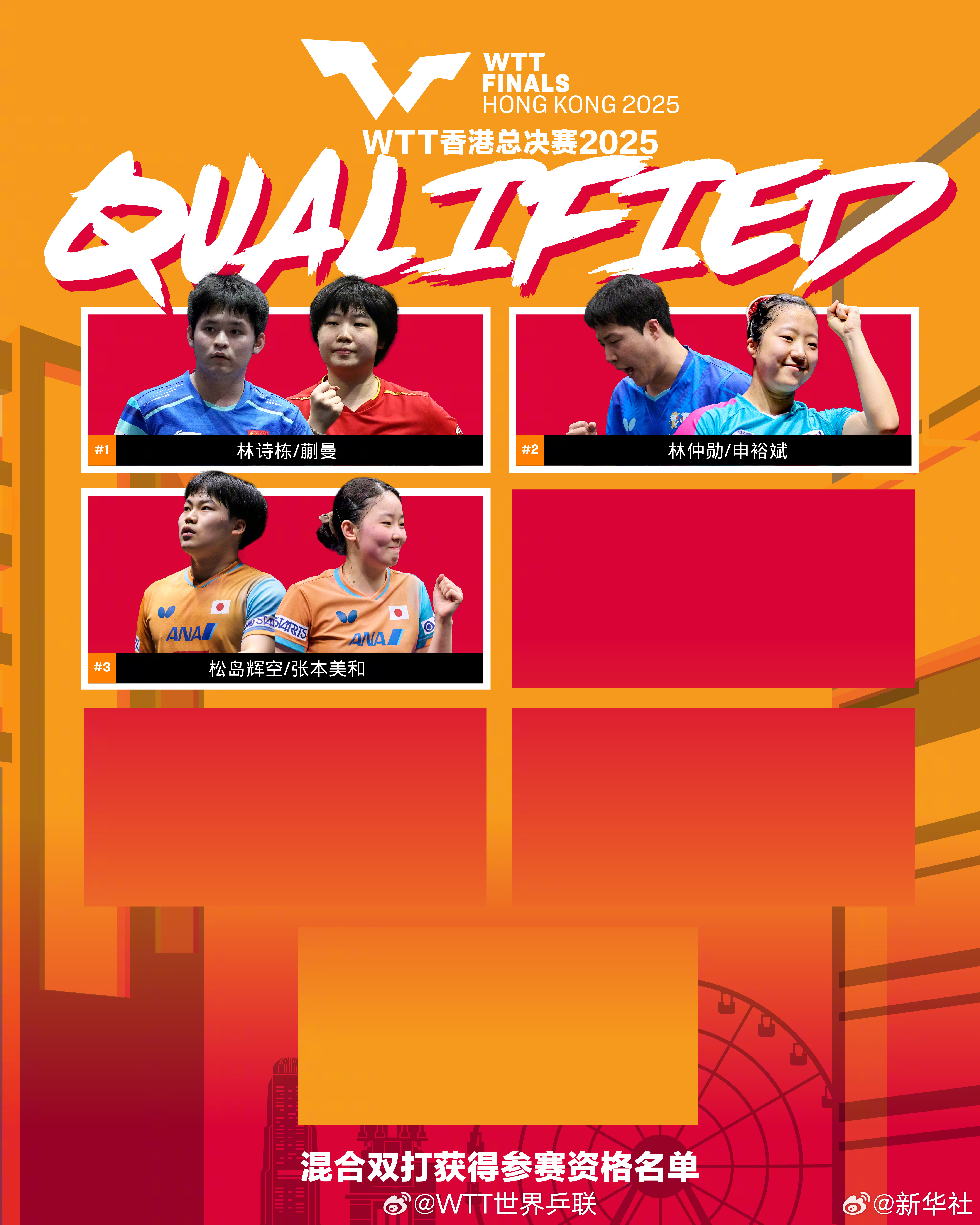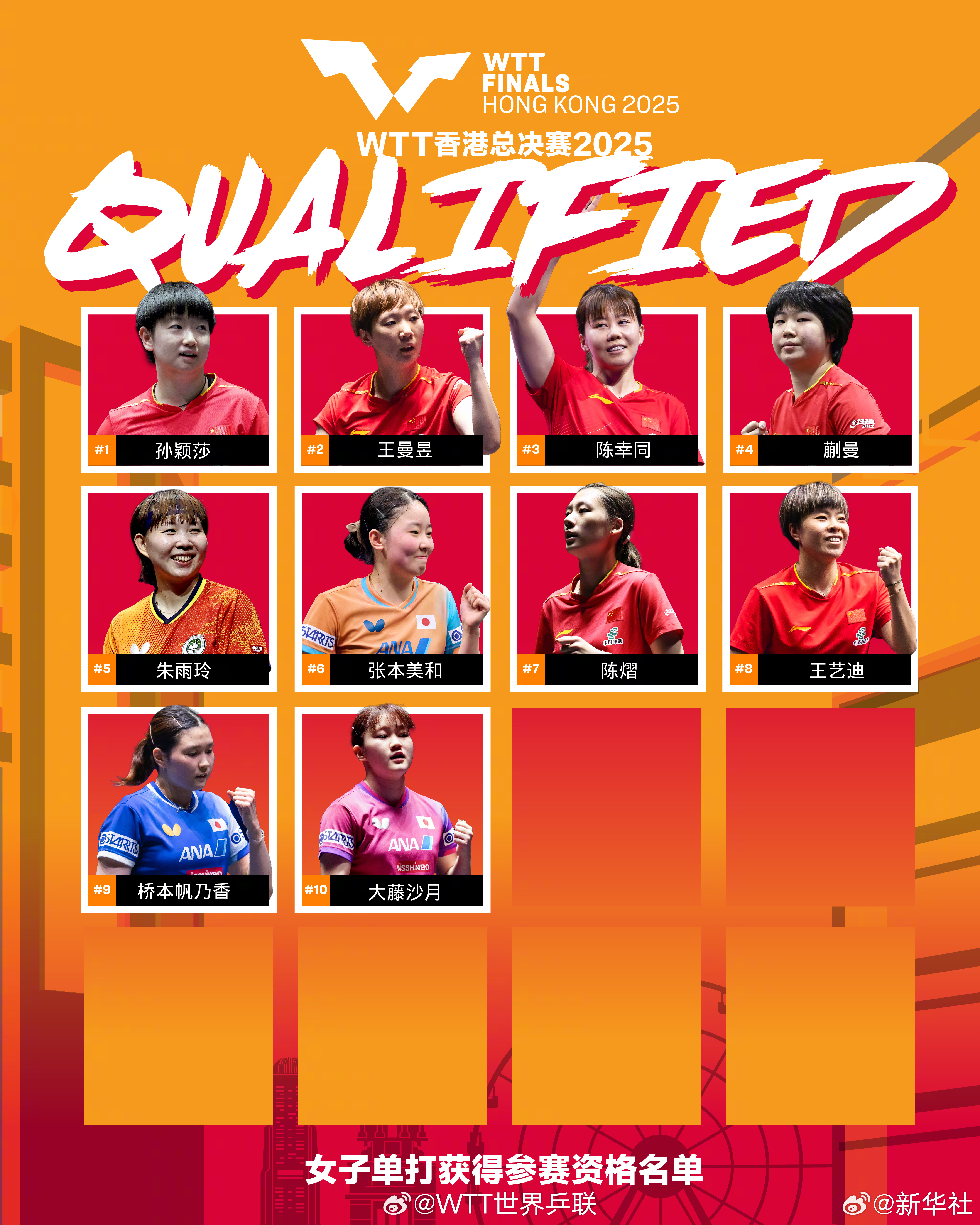 【#王楚钦孙颖莎王曼昱等获香港总决赛资格#】发布截至目前获得WTT香港总决赛2025参赛资格的名单,国乒多人获香港总决赛参赛资格↓↓