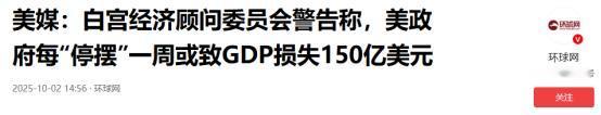 美国白宫宣布了 2025年10月7日,美国白宫国家经济委员会主任凯文·哈西特站在CNN镜头前,抛出了一组扎眼的数据。 他说,政府每停摆一周,美国GDP就蒸发150亿美元,换算下来,等于每周从每个美国人钱包里硬生生抠走45美元。 这话刚落地就炸了锅,全球都盯着美国——这哪只是经济受创那么简单?分明是美国政治体制里的老毛病,这下全暴露了。 这场停摆早有征兆。9月30日晚上,国会参议院没能通过临时拨款法案,联邦政府在午夜准时“关门”。这是美国近七年来首次出现这种情况,也是特朗普任期内遭遇的第二次停摆危机。 两党掐得水火不容的核心,还是钱的问题。国会两党在联邦拨款的核心条款上卡了壳,具体分歧没明说,但谁都不肯先退一步。 共和党握着众议院的话语权,民主党在参议院占着主动,两边在投票席上死磕,最后遭殃的还是整个国家。 这种“为反对而反对”的戏码,早成了美国政治的通病。宪法给了国会拨款权,却没说谈不拢该咋办。 两党正好钻了这个空子,把预算案当成互殴的武器。就像2018年底那次,为了特朗普要的边境墙拨款,两党僵了35天,创下史上最长停摆纪录。 这次才刚停摆几天,就有人算出了150亿的周损失,再拖下去,后果更不敢想。 哈西特报的150亿可不是吓唬人。白宫内部报告藏着更细的账:停摆每周会拉低0.1个百分点的GDP,要是拖满一个月,就得多出来4.3万人失业,消费者花的钱要少掉300亿美元。 高盛还补了一刀,说算上私营企业的损失,每周经济增速可能得降0.15个百分点。这些数字背后,是一长串被打乱的生活和生意。 最直接的冲击先砸在联邦雇员身上。约80万联邦雇员被迫在无薪工作和强制休假之间选边站。国土安全部、农业部这些关键部门的人,要么饿着肚子上班,要么在家坐立难安。 他们手里的钱少了,自然不敢随便花,零售业、餐馆最先感觉到寒意。国家公园更惨,大门一锁,每天100万美元门票收入泡汤,周边商户一天得亏7700万美元。 企业这边更难熬。证券交易委员会、商品期货交易委员会九成以上的人休了假,IPO审批全停了,上市公司的监管成了真空。 港口的麻烦更大,海关技术人员不够,货物通关慢得像蜗牛。2018年停摆时,洛杉矶港的货物停留时间硬生生多了15%到20%,现在这场景又重演了。 食品、酒类这些易腐货物堆在码头,贸易商看着货烂掉,只能骂街。 经济数据还断了供。劳工统计局不发就业报告和CPI数据了,美联储手里没了温度计,根本摸不准经济是冷是热。市场一慌,避险情绪就冒头。 黄金价格蹭蹭涨,道琼斯指数上蹿下跳,波动幅度比平时大了一倍。投资者攥着钱不敢动,生怕踩中看不见的坑。 更要命的是长期伤。国会预算办公室算过,2018年那35天停摆总共亏了110亿美元,其中30亿永远回不来了。这次要是拖得更久,科研项目得中断,关键岗位的人要走,美国经济的底子就得被掏空。 麻烦还飘出了美国国界。美国海关一慢,全球贸易都跟着卡壳。欧洲企业往美国运的货,卡在港口里没法卸货,德国工业企业的供应链断了好几条,老板们急得天天给国会打电话。 金融市场的震动更直接,英国安本投资公司早就预警,要是停摆续上八周,欧盟GDP得少160亿欧元。 世界银行看得更透,说这停摆暴露的是美国的制度硬伤。大家对美元霸权的信心,对美国主导的经济治理体系的信任,都在一点点流失。 新兴市场趁机加速去美元化,东盟国家的本币结算比例悄悄往上走,谁都不想再被美国的政治闹剧牵着鼻子走。 政治场上的拉扯还在继续。特朗普在社交媒体上骂民主党“故意找茬”,民主党则回怼共和党“拿国家利益当赌注”。参议院少数党领袖舒默放了狠话,说拨款条款不解决,想让民主党松口没门。 两边开了好几次闭门会,每次都是不欢而散。2026年中期选举不远了,两党都想把停摆当成拉选票的筹码,共和党要装“财政管家”,民主党要扮“民生卫士”,谁都不肯先低头。 普通美国人早就忍够了。华盛顿街头已经出现了抗议队伍,联邦雇员举着“要工资要工作”的牌子,路人纷纷驻足鼓掌。 《纽约时报》的民调显示,68%的人都盼着两党坐下来谈,但没人觉得这事能轻易解决。有人提议搞预算自动延期机制,可改法律得两党同意,现在根本不可能。 还有人说改宪法,那得38个州点头,更是天方夜谭。哈西特报出的150亿,像根刺扎在美国人心里。 这钱不是数字,是雇员餐桌上少的肉,是商户账本上的红笔,是全球供应链上的堵点。当国家机器的停摆成了政党博弈的工具,当每周150亿的损失被当成“政治成本”,美国的制度困局已经摆上了台面。 这场停摆迟早会结束,但它留下的伤口,恐怕要很久才能愈合。而接下来的日子,美国人还得攥紧钱包,盯着国会山那伙人的脸色过日子。
