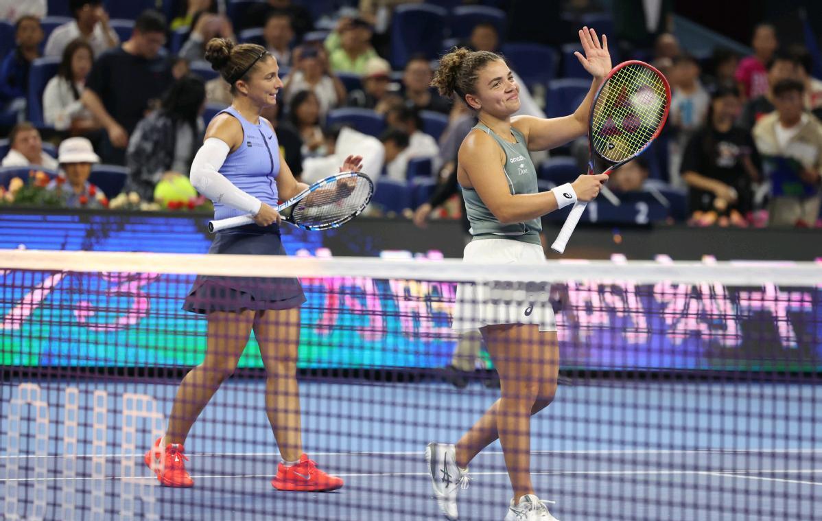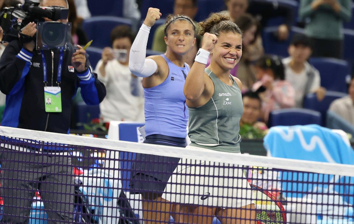 中网女双决赛,意大利组合保利尼和埃拉尼,2-3落后连赢四局,1-3再追五局,双逆转夺冠。 35岁的埃拉尼,巴黎奥运金牌后只练了两站,一上来就再拿冠军。28岁的保利尼,单打、双打年终总决赛门票,全攥手里了。 这是中网史上第四次卫冕,也是第一对意大利组合做到。 她们一发得分率78%,破发成功率71%,敢打,更稳。 颁奖时埃拉尼用中文说“谢谢北京”,举着35岁生日蛋糕笑得像刚偷到糖的孩子。 保利尼把奖杯扣头顶自拍,视频点赞破120万。 她们没喊口号,没说梦想,但每一分都打得像在拼命。11月利雅得,这俩人,是总决赛最不想碰的对手。