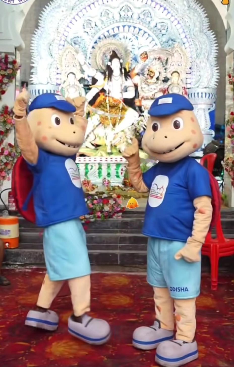 真是怕啥来啥, 我说怎么刷到这两个人偶, 原来是乒乓球亚锦赛的吉祥物。 看着这吉祥物的造型有些熟悉, 特别像小时候看过的“忍者神龟”。 国乒就要出发印度参加亚锦赛了, 真是为他们捏把汗。 刚还刷到侯英超老师的视频, 说国乒后勤肯定会做到位, 面临的各种不适应和病痛都会做好准备, 但是还是非常担心。 听说洗澡把水溅到眼睛里就会不舒服, 不知道真假, 也不知道有没有媒体跟随他们, 随时想知道他们的消息。 希望国乒安安全全地去, 平平安安的归来就好。 (图片源自于网络)