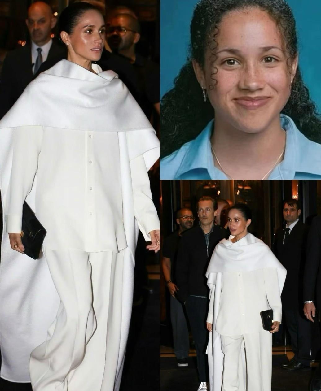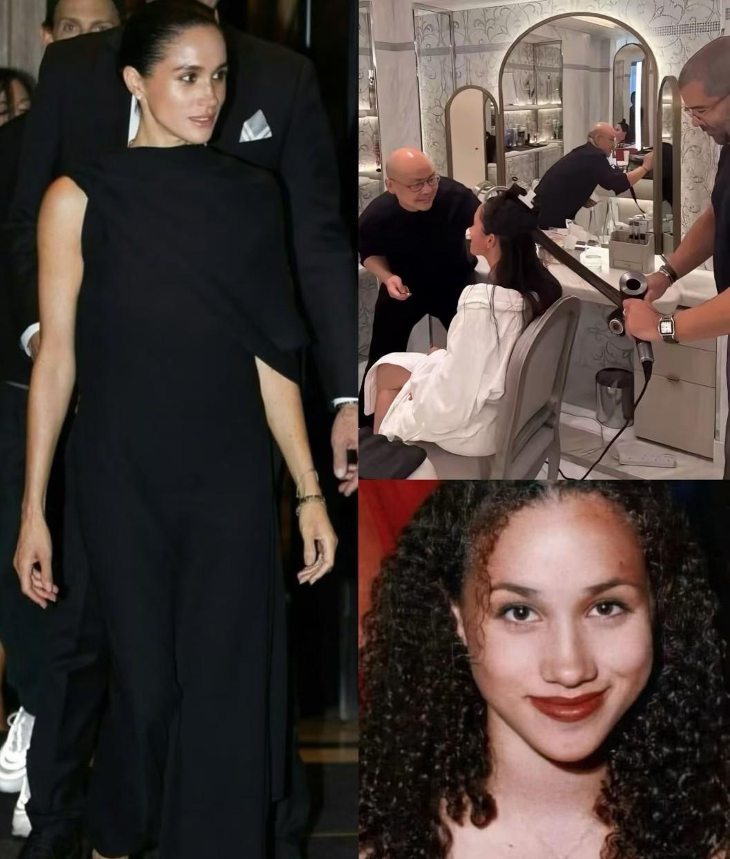 梅根!能把一头自然卷拉直的狠人啊! 梅根亮相巴黎世家活动,晒出造型团队在给她拉头