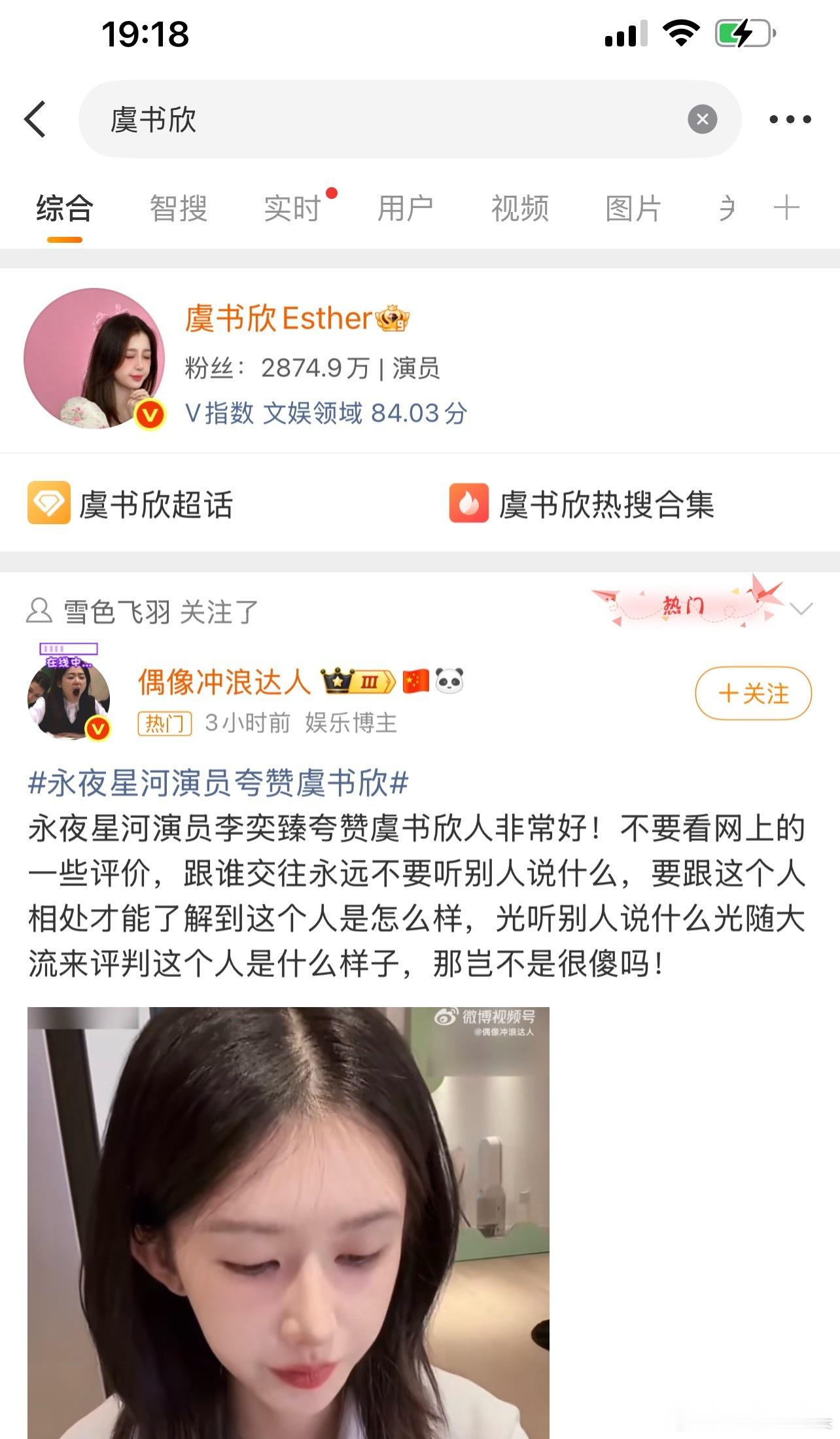 虞书欣搜索框词条被清空了…但是相关博文还在。