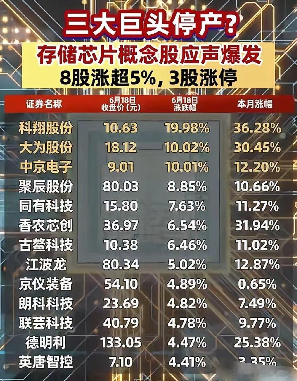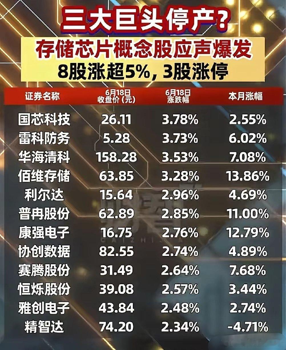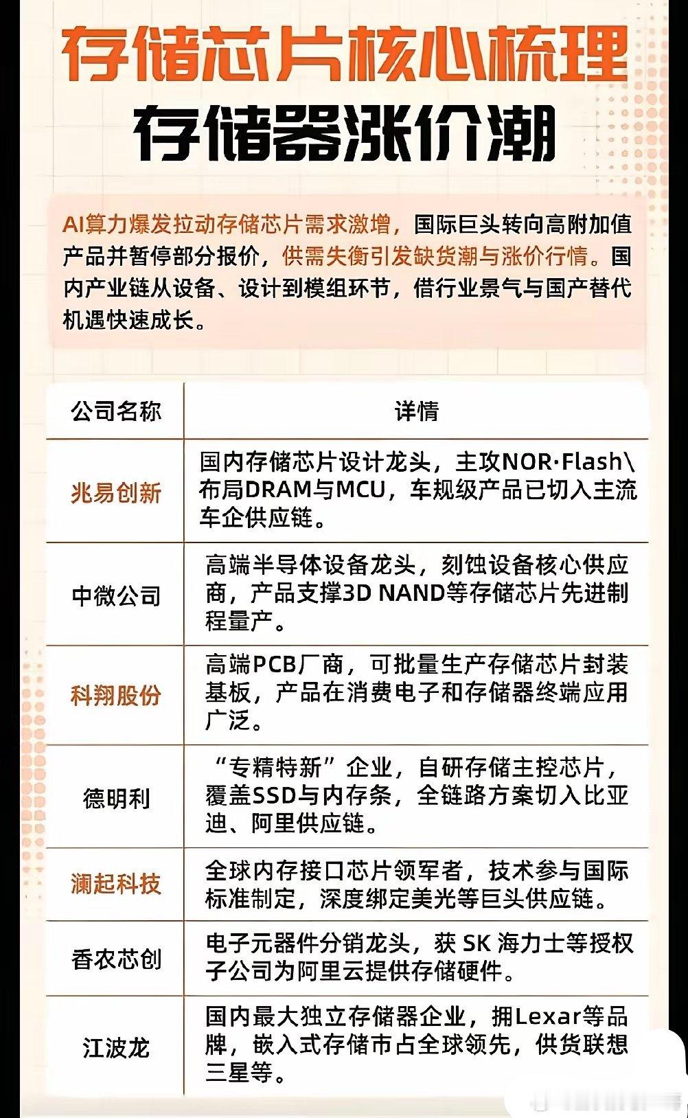 3. 厂家主动涨价:三星、海力士、闪迪等头部存储芯片厂商纷纷宣布,三季度至四季度存储芯片价格将上涨20%-30%,其中汽车存储芯片涨幅尤为突出,部分甚至高达70%,这一消息直接刺激了存储芯片概念股的上涨。