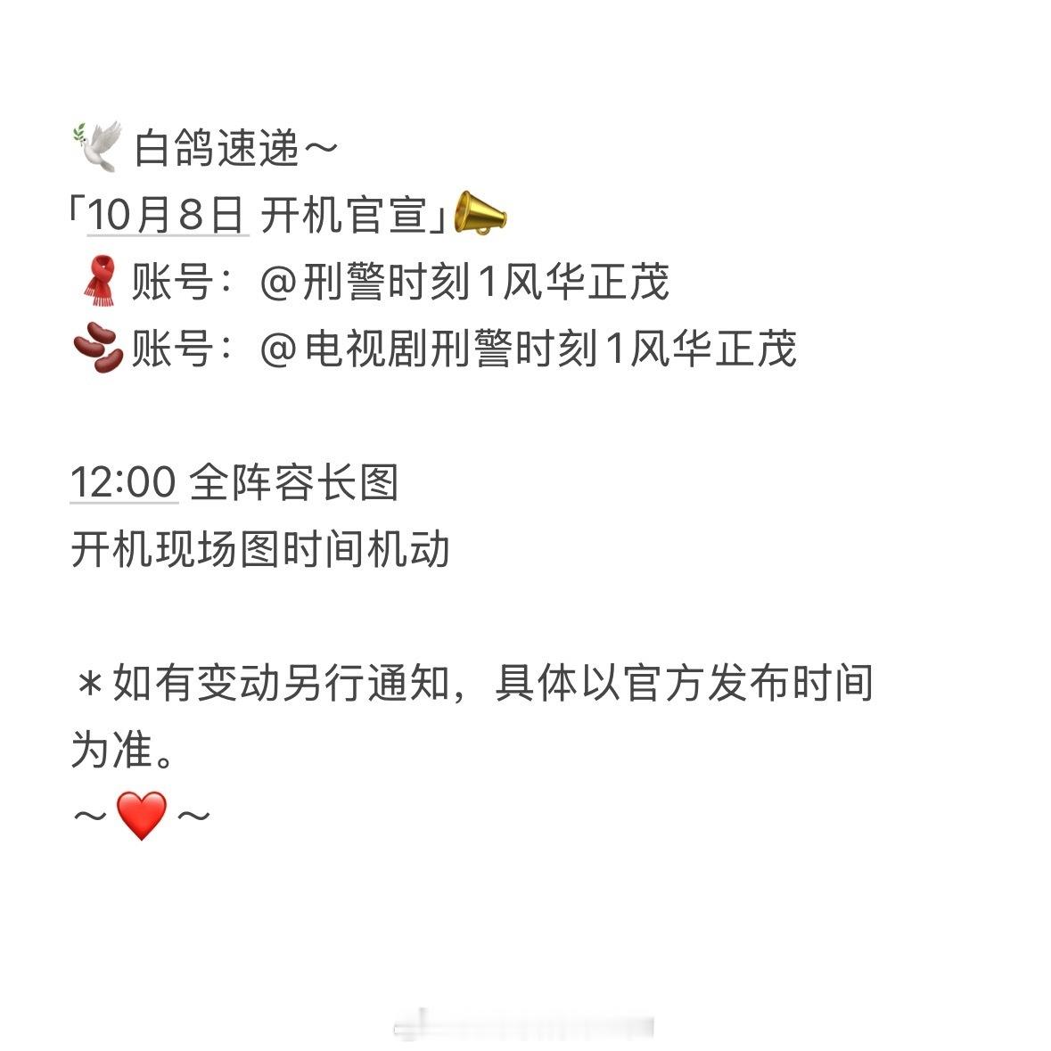 哇,白敬亭刑警时刻明日开机官宣👏🏻