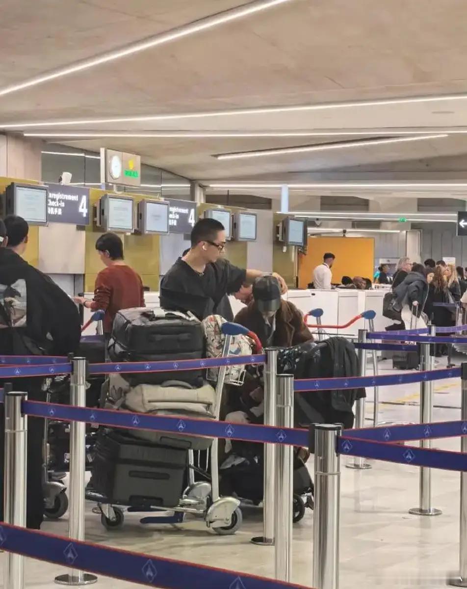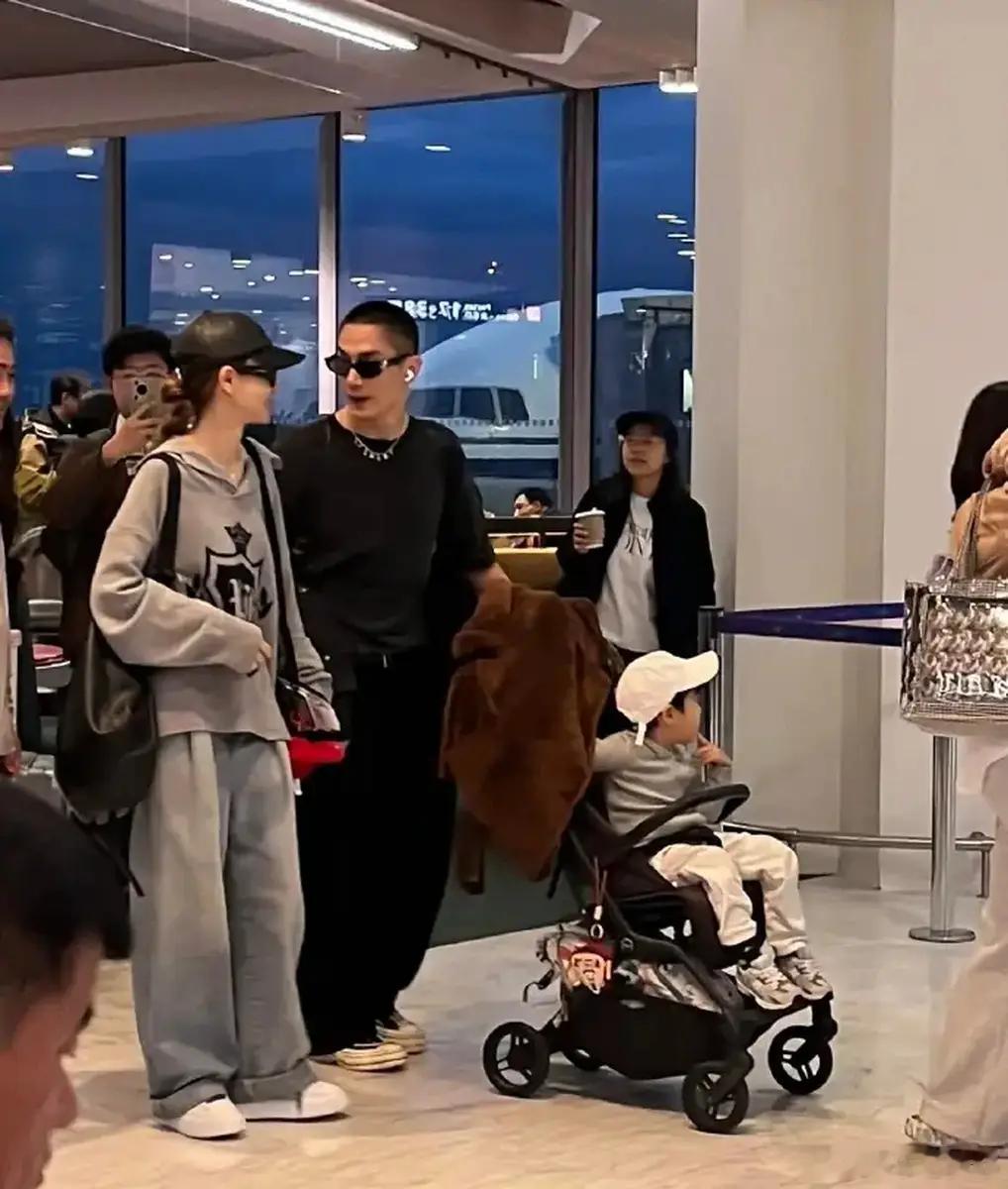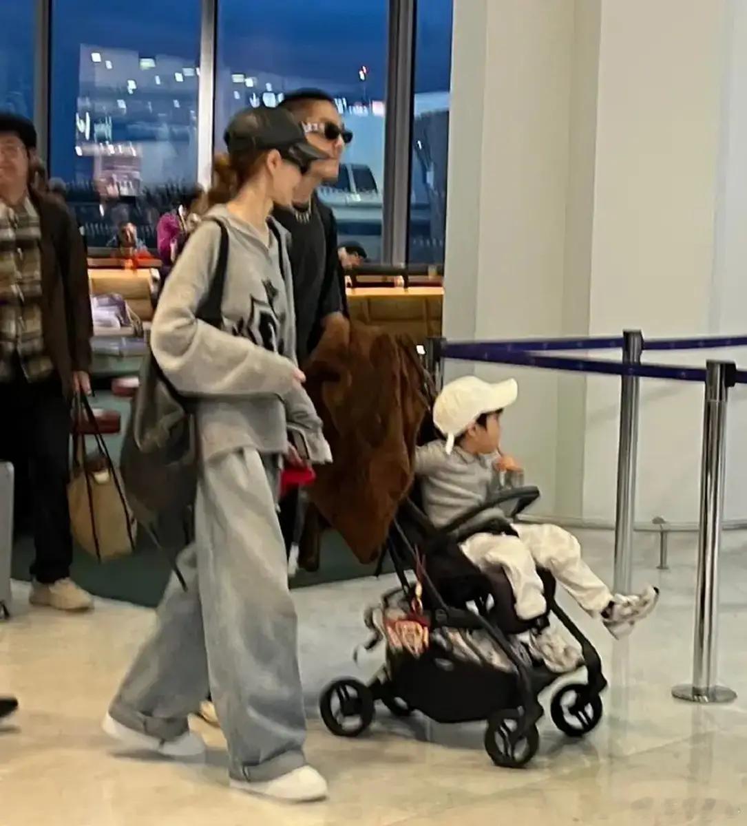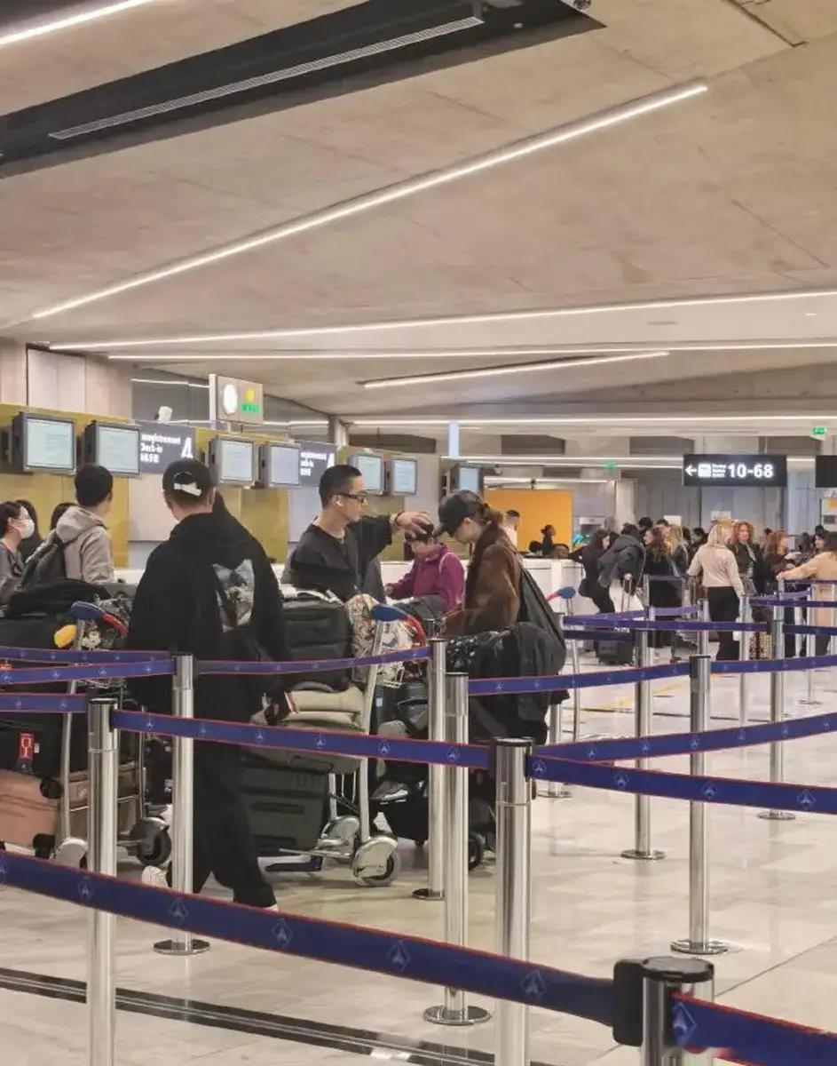近日,网友在巴黎机场偶遇戚薇李承铉一家。