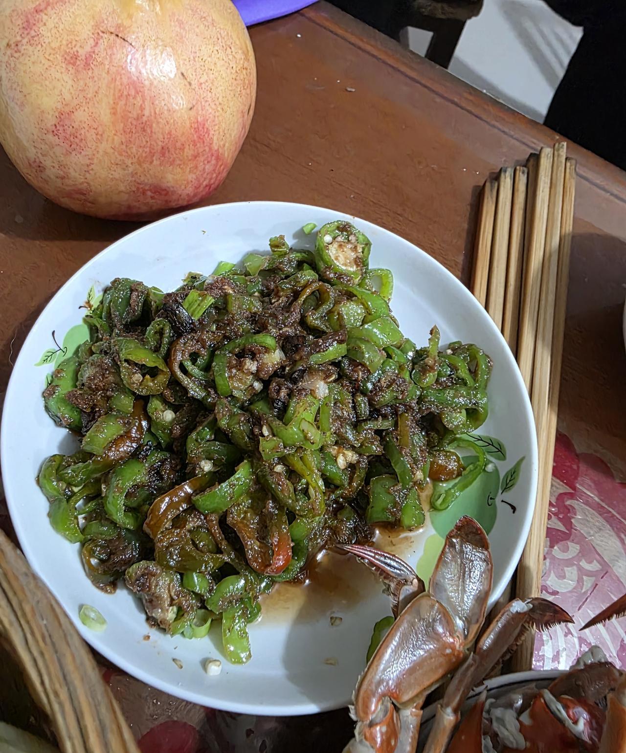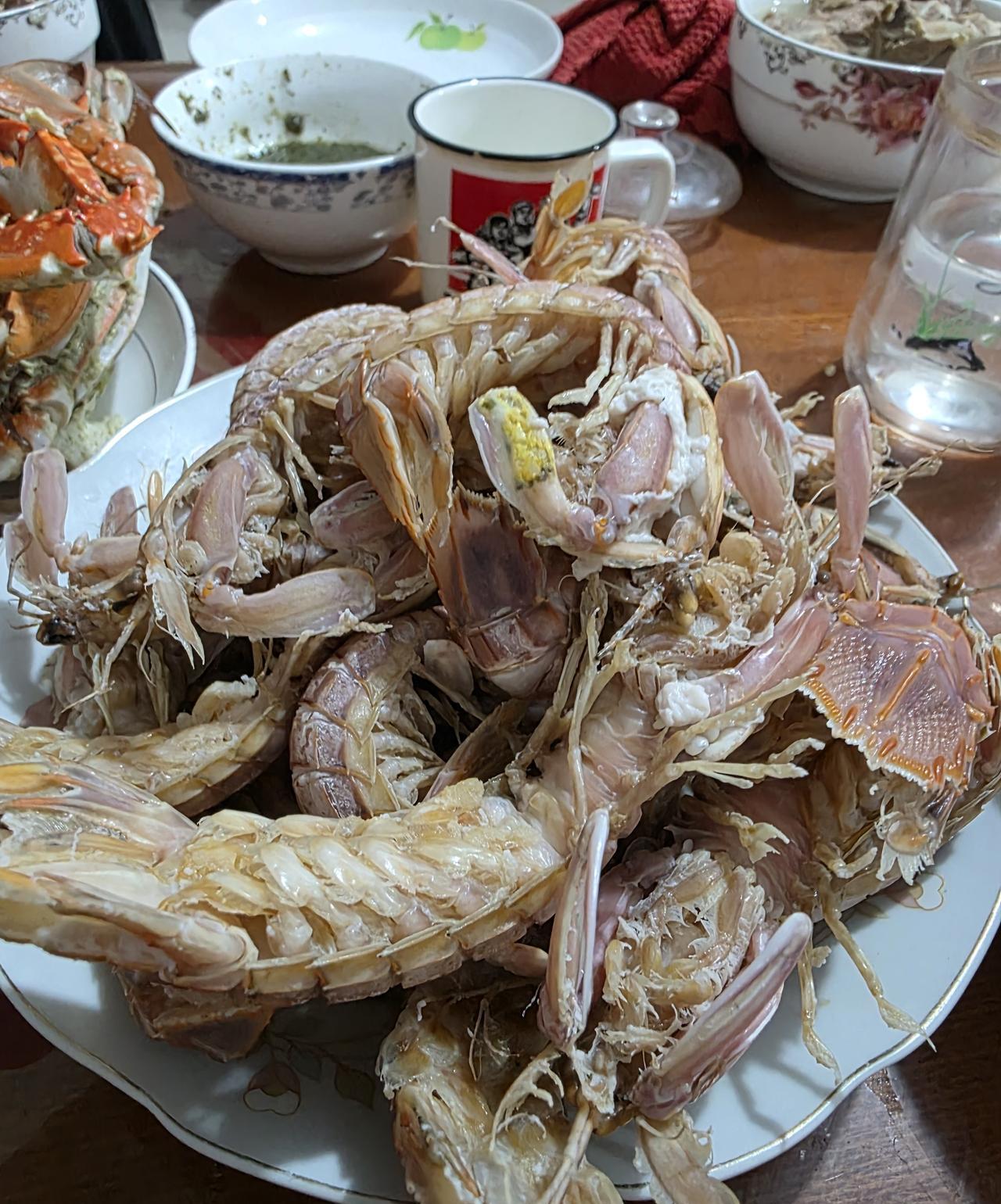 今天晚上,三弟、三弟妹、我和老娘饿晚饭…… 今天下午三弟和弟妹从南京回来了,晚上过来吃饭。我煮了琵琶虾,蒸了螃蟹,炒了虾酱,热了昨晚的羊肉。 老娘既不吃羊肉也不吃螃蟹,就啃了两个玉米。你说她牙不好吧,啃玉米来咔咔的,说的牙好吧,又说羊肉咬不动。 三弟喝酒,我和老娘先吃着。我快吃完时弟妹才来,三弟说这个假期她一直加班,申报一个什么课题,我没听明白。 有了辣椒炒虾酱,我的食欲就被点燃了,没出息的劲儿也就又上来了,卷着虾酱吃了三张煎饼,撑得很不舒服,放下筷子就走到小区外散步。 中秋时节,二十三四的气温,很舒服。邻居们聚集在临街店铺前打牌、烧烤,或者喝酒聊天,烟火气息很浓。 想想生活也没什么复杂的,无非一年四季,一日三餐,人间烟火,清清淡淡,对不对?