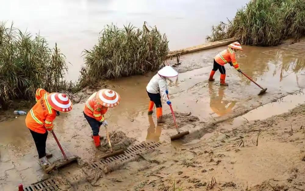 必须马上在淤泥还软烂的时候迅速清除干净,一两天内日晒硬了,工作难度成倍增加,唯一有效的办法就是冲到河里。