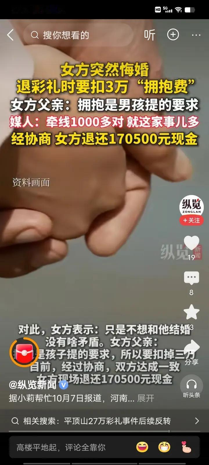 河南平顶山这事儿真离大谱! 婚期都近了,婚纱照也拍了,女方一句“看不上男生”就悔婚,还冒出个3万的“拥抱费”,任谁看了都得说句不像话! 三个疑问戳中要害:嫌老实、工资低,早干嘛去了?说拥抱是男方提的,咋不提前把话说清?不想结婚,相亲时为啥不直接拒绝?婚姻不是菜市场挑菜,更不是拿条件当筹码的交易。想找条件好的没问题,但得先认清自己的实际情况,学历、长相、家境都是相互匹配的,哪能既耽误别人,又想坐享其成? 说到底,这事儿缺的就是“真诚”二字。要是一开始就坦诚相待,哪来这么多糟心事?你身边遇到过这种离谱的婚恋纠纷吗?平顶山婚姻