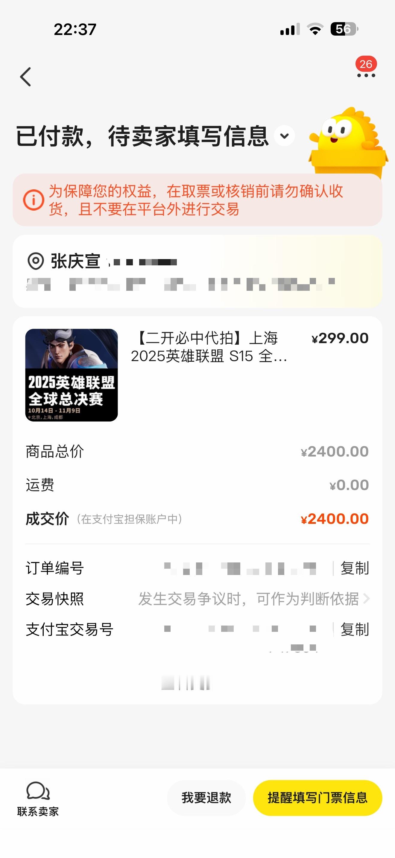 英雄联盟S赛好不容易在国内一次,想着去感受一下现场的氛围,花2400找了个代拍……[衰]