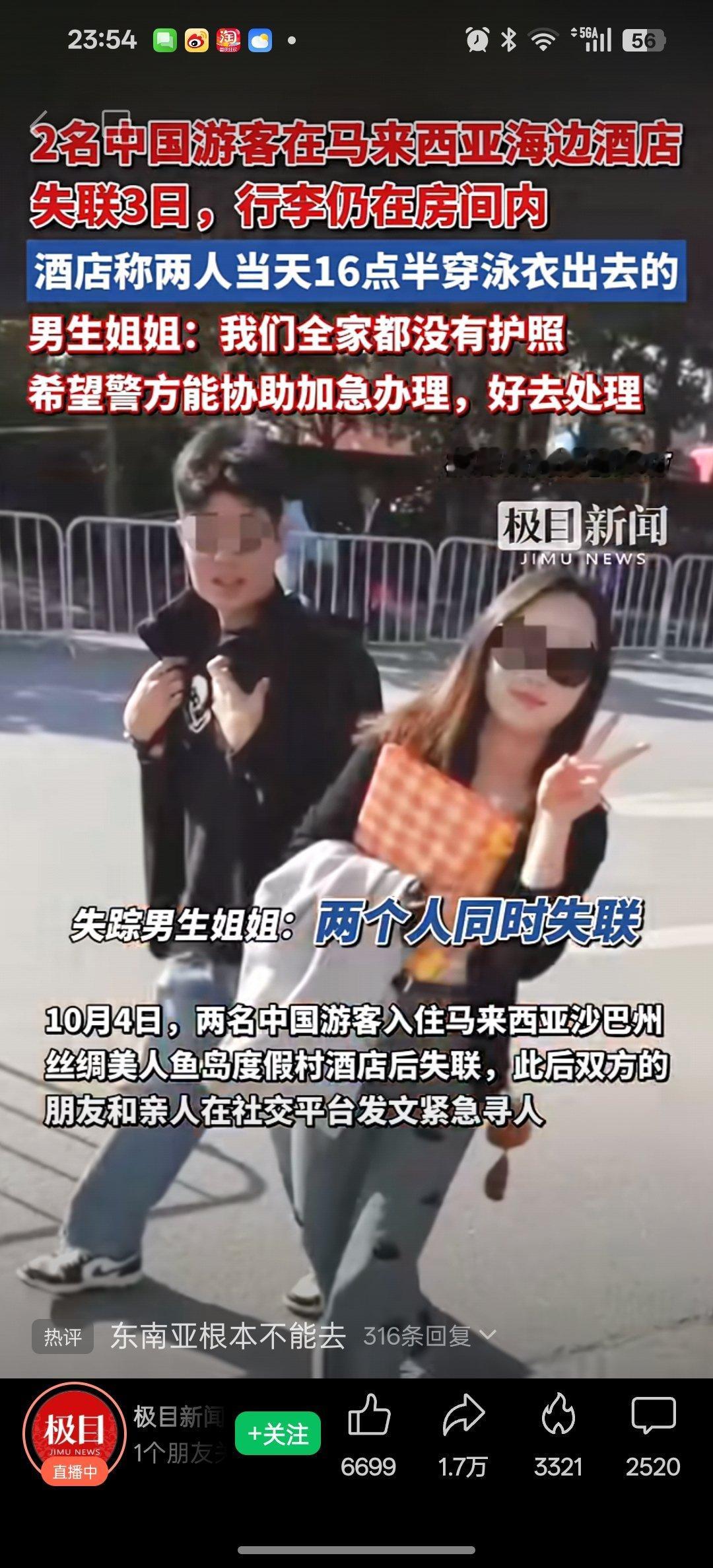2中国游客在马来西亚一岛上失联