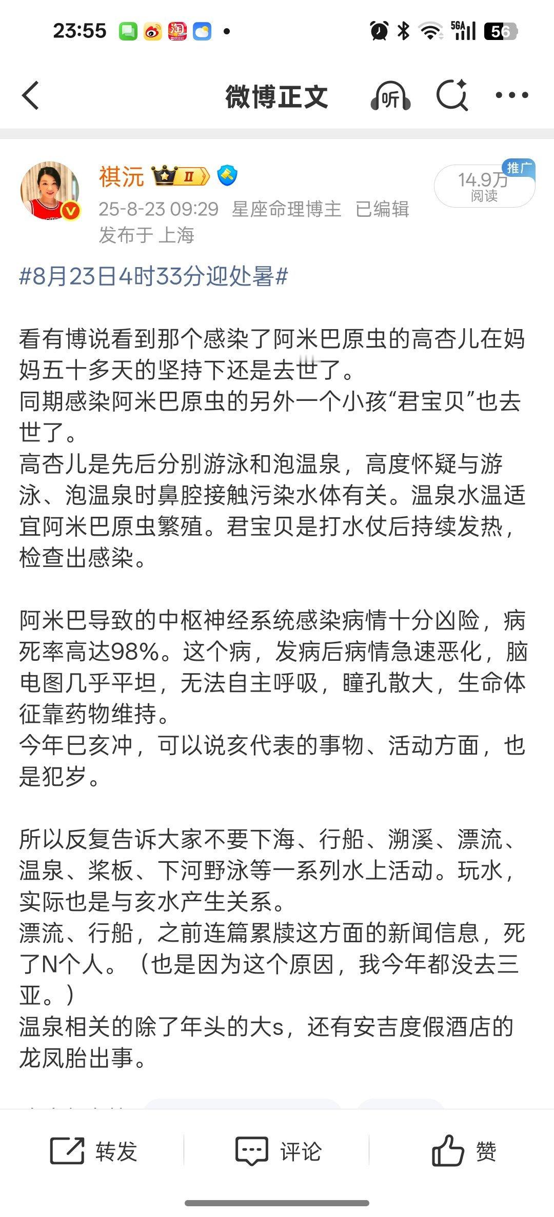 前有因游泳、泡温泉感染“阿米巴原虫”导致死亡的小孩,后有多起与下海、漂流、行船、温泉相关的死亡事故。