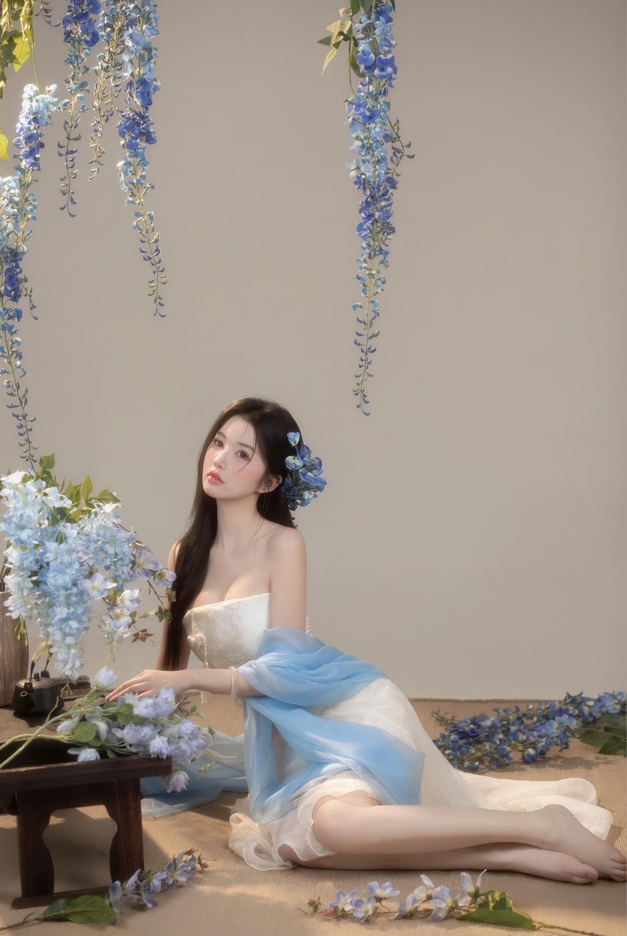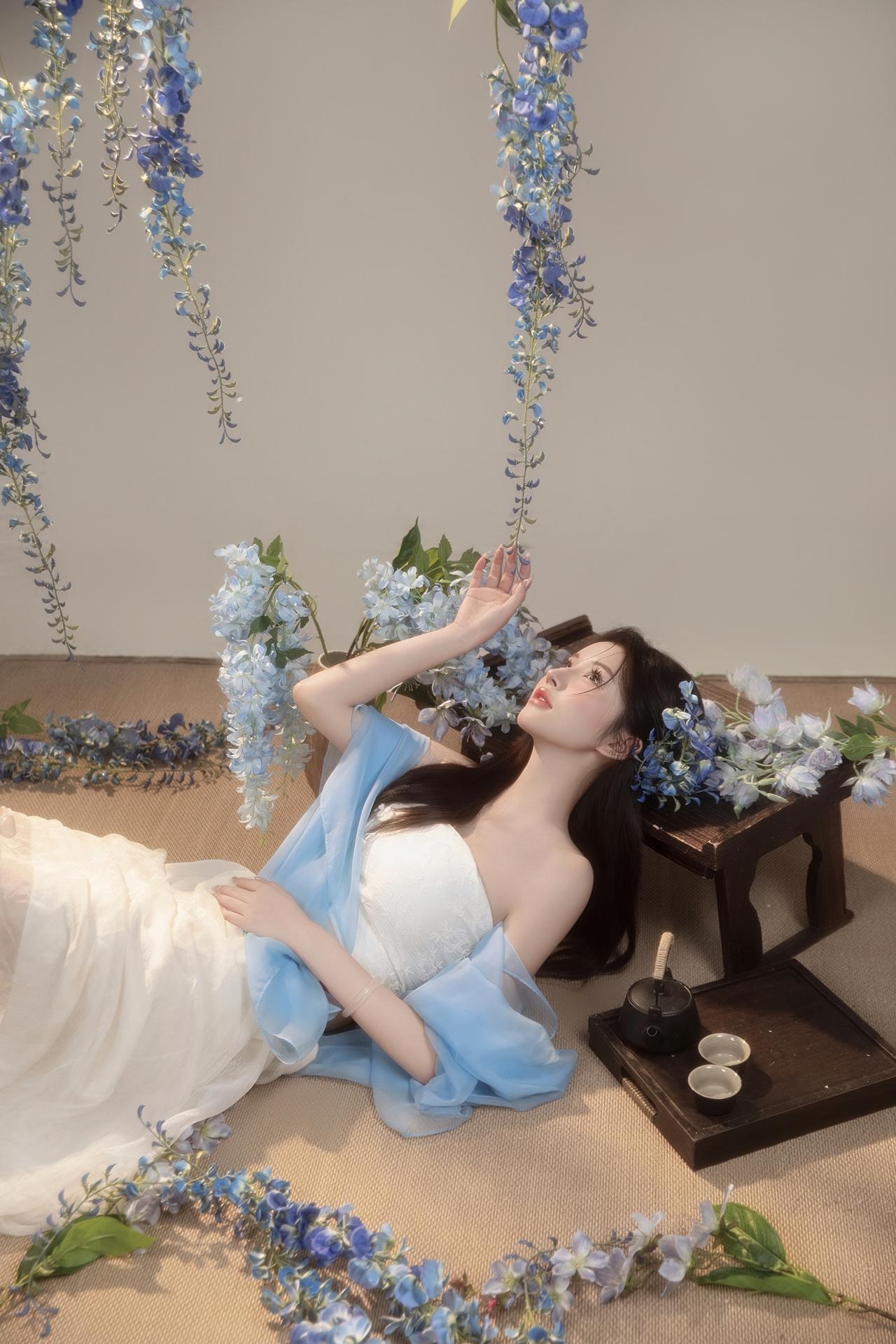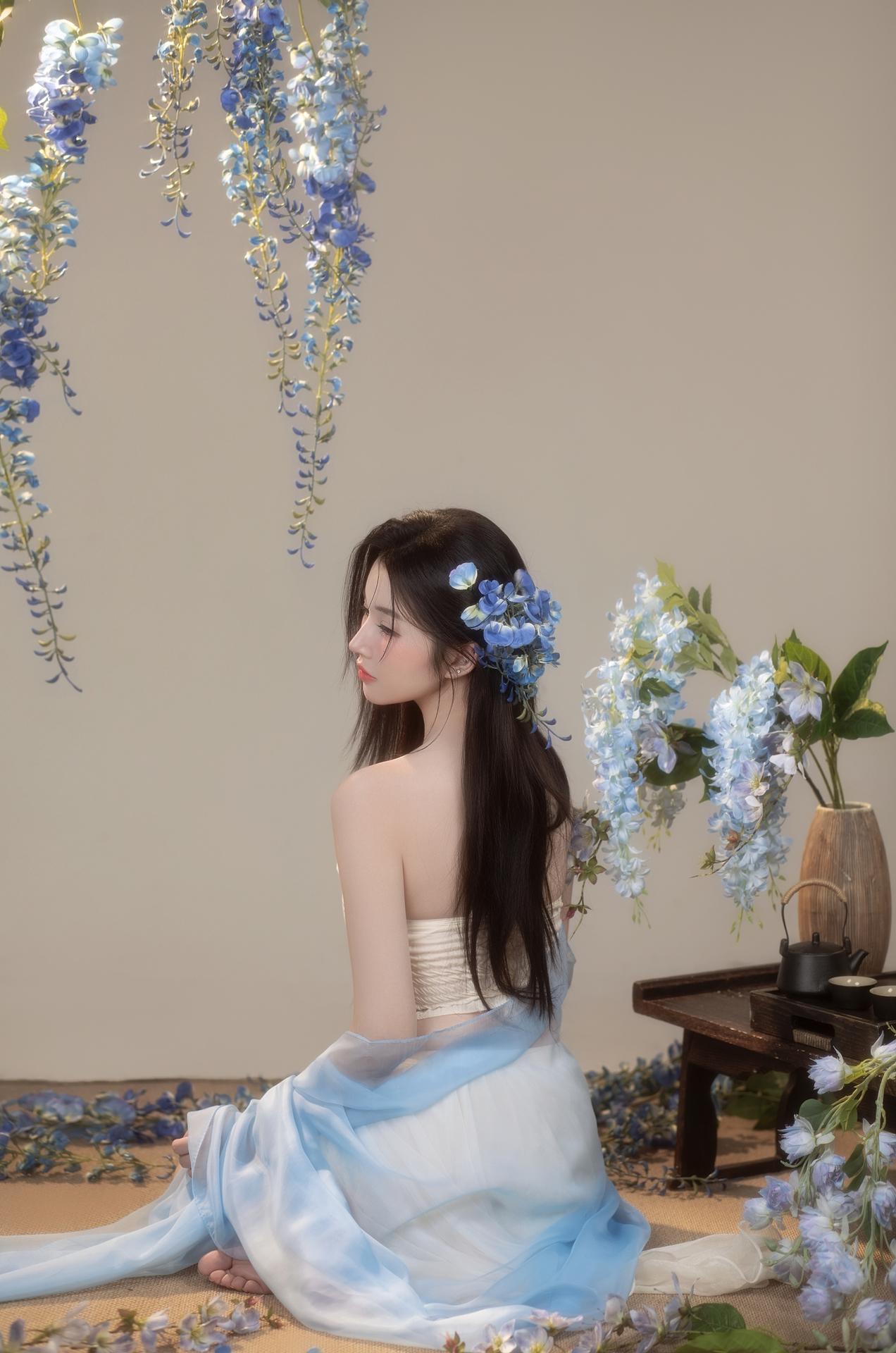 紫藤花开,东方破碎感写真美学|少女写真。🌸垂落的蓝色紫藤诉说柔情 古风典雅的韵味扑面而来 一刹间光阴流转,暗香浮动☁️ 新中式纱裙缠绕过颈间 📷镜头定格清冷氛围 - 新中式写真女子写真写真风格纯欲写真品质写真
