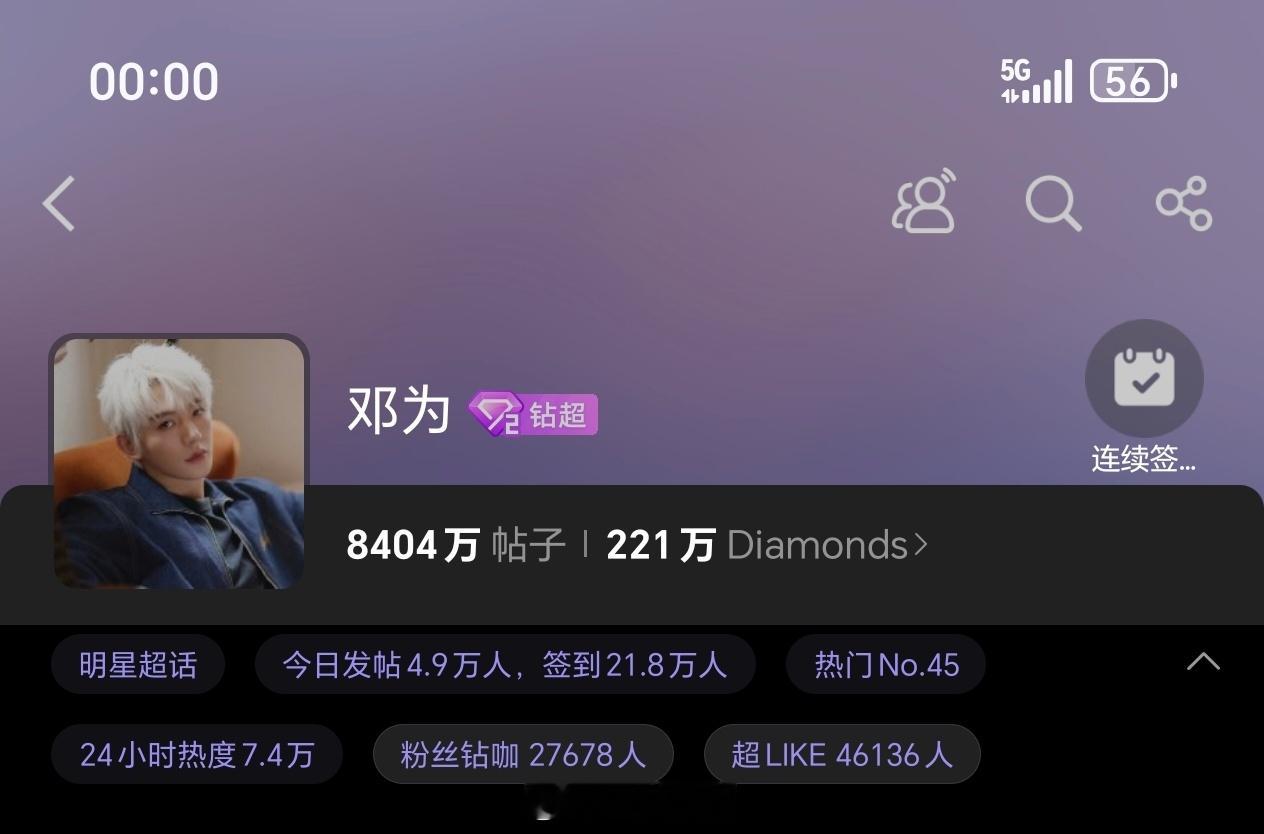 邓为昨日超话发帖4.9万+。超like4.6万+邓为粉丝非常能打,又充满正能量,