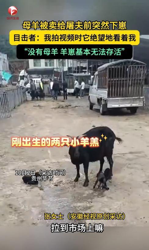 贵州毕节那个市场啊,那天可热闹了,张姐要把自家的羊卖给屠夫,谁知道羊在交易的时候,居然生了,一生还俩,双胞胎,你说说这事儿,怪不怪,听着就觉得心里不是滋味,那个场面,想想就能感觉到,那个母羊,眼神里都是绝望,唉,张姐也是,一脸的无奈。 你说这事儿吧,往深了想,可多了,那个母羊,它拼命生孩子,是想活下去呢,还是母爱发作,谁知道呢,张姐呢,卖羊肯定是有她的难处,要不是为了生活,谁愿意这样啊,咱们中国人不是讲究“万物有灵”嘛。杀活羊