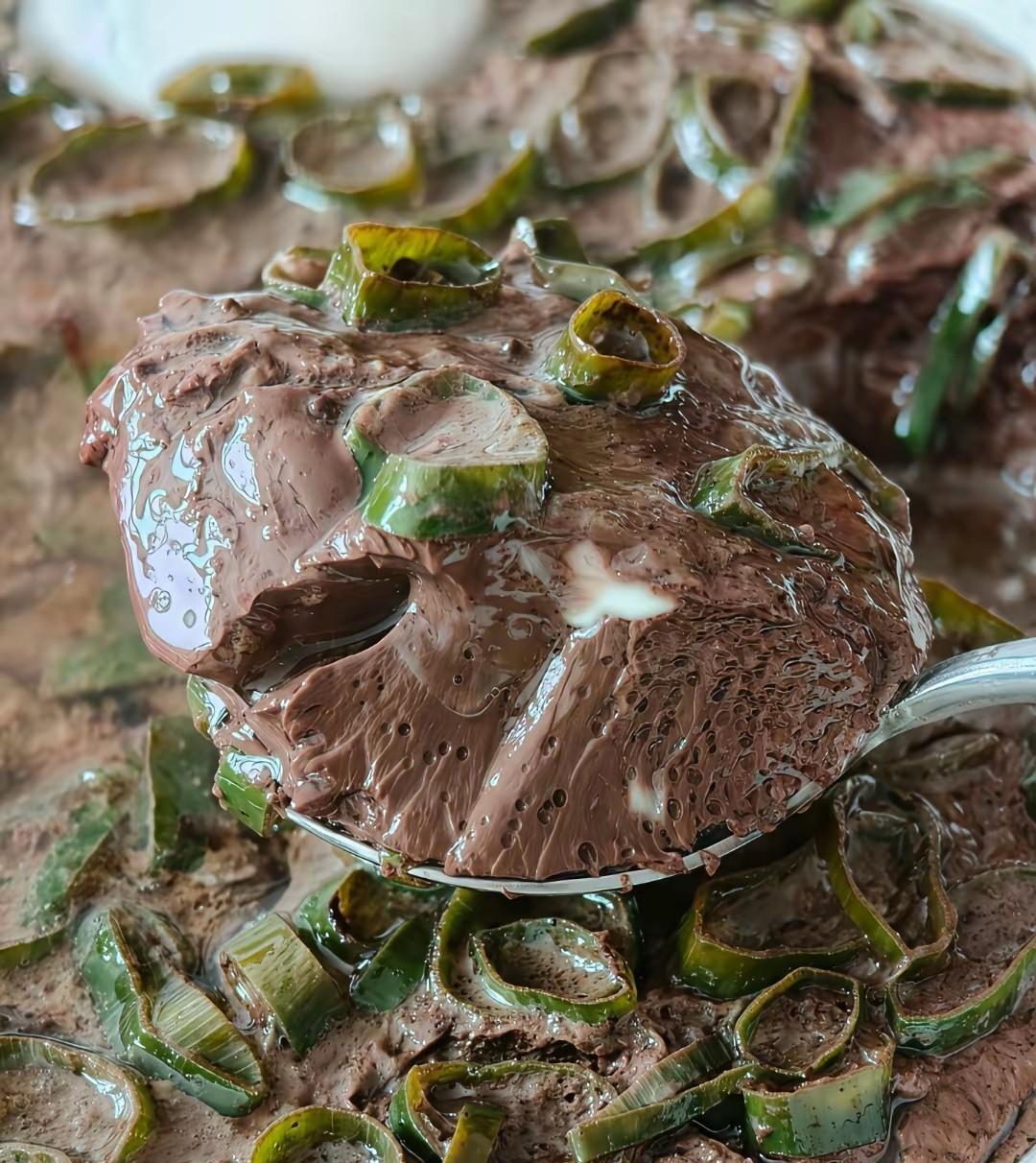 今年中秋回老家陪父母过节,隔壁邻居杀猪给父母送了些猪血。做了吃了才知道,以前吃的猪血都白吃了。以前吃的猪血表面光滑,无滋无味。这真正的猪血表面布满蜂巢一样的窟窿,口感鲜嫩中带着筋道,就是没有牙的老人孩子,也能吃的有滋有味。