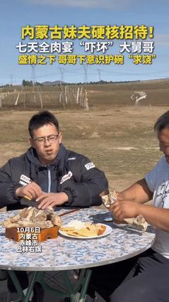 男子国庆去内蒙古,看望远嫁的妹妹,不料,他刚到目的地,就受到妹夫的热情款待,整整7天时间,菜都不带换样的,全都是肉!吃到最后,他看到妹夫又在剪肉时,他立马护住碗,估计被吓得不起,妹妹在旁边笑得直不起腰!网友:娘家人来考察生活状况,天天顿顿都是肉吃的,脑壳发晕! 在山西运城和内蒙古赤峰之间,横亘着几百公里的路程,这距离让远嫁赤峰的妹妹,和留在运城的哥哥平日里很难见上一面。 好不容易等来了国庆长假,妹妹一通电话打给哥哥,哥哥当晚就忙着收拾行李,第二天一早就连夜赶路。 他心里揣着两件事,一是想亲眼看看妹妹在赤峰的生活环境,看看她住得舒不舒服;二是也想趁这个机会,瞧瞧妹夫待妹妹好不好,有没有让妹妹受委屈。 等哥哥风尘仆仆赶到妹妹家楼下时,妹夫早已在那儿等候。 妹夫是土生土长的蒙古人,身上穿了件素净的蒙古袍,手里拎着一块足有好几斤重的羊肉,肉上还沾着新鲜的血丝,一看就是刚从附近牧民手里收来的上好食材。 见哥哥来了,妹夫笑着迎上前,一边接过哥哥手里的行李,一边说这一路跑下来肯定累了,晚上就做手把肉,让哥哥好好尝尝草原上的正宗味道。 当天晚上,一锅手把肉端上桌,热气裹着浓郁的肉香瞬间填满了屋子。 哥哥夹起一块肉,轻轻蘸了点盐,放进嘴里一嚼,羊肉的鲜嫩在舌尖散开,没有一点腥气,比他在运城菜市场买的羊肉多了股子纯粹的草原风味,忍不住连连说好吃。 接下来的两天,妹夫像是要把草原上的肉菜都做给哥哥尝遍,今天是外皮焦脆、内里多汁的烤羊排,明天是炖得软烂入味的牛肉土豆,后天又端上了串得紧实的羊肉串,每一顿都吃得哥哥满嘴流油,一开始还觉得新鲜又满足。 可这顿顿不离肉的日子过了三天,哥哥就渐渐扛不住了。 每天面对的都是这样扎实的肉菜,没有半点素菜搭配,肠胃慢慢就吃不消了,再看到桌上的肉,不仅没了前两日的期待,反而有点犯怵。 更不巧的是,这时候哥哥还感冒了,浑身没力气,胃口也跟着差了不少。 有天中午,一家人围着桌子准备吃饭,妹夫从锅里捞起一块熟肉,拿起刀刚要往哥哥碗里切,哥哥下意识就把自己的碗往怀里挪了挪,一只手紧紧扣在碗口上,身子还往后轻轻倾了倾,那模样像是生怕肉真的落到自己碗里。 妹妹坐在旁边,把哥哥这副“紧张避肉”的样子全看在眼里,忍不住笑出了声,悄悄掏出手机,把这有趣的一幕录了下来。 其实妹夫这么热情地用肉招待,全是按着草原上的老规矩来的。 在蒙古族的习俗里,肉是家里最金贵的东西,招待客人时把最好的肉端上桌,是从老辈人那里传下来的讲究。 妹夫总跟妹妹说,哥哥难得从运城来一趟赤峰,要是不能让哥哥吃尽兴,自己这心里就不踏实,总觉得没尽到地主之谊。 网友们看了这段视频,讨论得格外热闹。 有人注意到视频里的细节,哥哥穿着件薄棉袄,妹夫却只穿了件短袖,忍不住调侃说“大舅哥这身子骨得再练练,不然跟内蒙的天气都有点不搭”; 还有网友分享自己的经历,说之前去内蒙古参加朋友婚礼,也是顿顿吃肉、顿顿喝酒,最后连当地的奶茶都喝得有些腻,尤其是同行的几个江南朋友,酒量一般,每天都被灌得晕乎乎的; 更多人说山西人平时习惯以面食为主,每顿饭都得有荤有素搭配着来,突然换成天天全肉的吃法,难怪哥哥会“水土不服”,看到肉就想躲。 要说这七天的“全肉宴”,确实让哥哥有点“吃怕了”,甚至看到妹夫切肉就下意识护碗,但这份“硬核招待”里,藏的全是内蒙古人的实在。 妹夫不是不懂荤素搭配,而是把自己眼里最珍贵的东西拿出来招待客人,这份直白又热烈的心意,比任何精致的菜肴都让人暖心。 后来哥哥准备回运城的时候,妹夫还特地装了不少真空包装的羊肉和牛肉,让哥哥带回去给家里人尝尝。 哥哥看着手里的肉,又想起这七天的经历,忍不住笑了。 这趟赤峰之行,虽然被“全肉宴”“吓坏”了,却也实实在在感受到了妹夫的诚意,心里踏实得很。 今天的分享到这里就结束了,大家对此事有何看法,欢迎在评论区留言和讨论,感兴趣的可以点击头像加关注,我将每日更新优质内容,我们下期见。 信源: 原文登载于美丽浙江2025年10月07日关于《山西大舅哥招架不住内蒙热情 到内蒙古探望妹妹,妹夫一周全肉宴“吓坏”山西大舅哥,连连护碗说“不要”》的报道