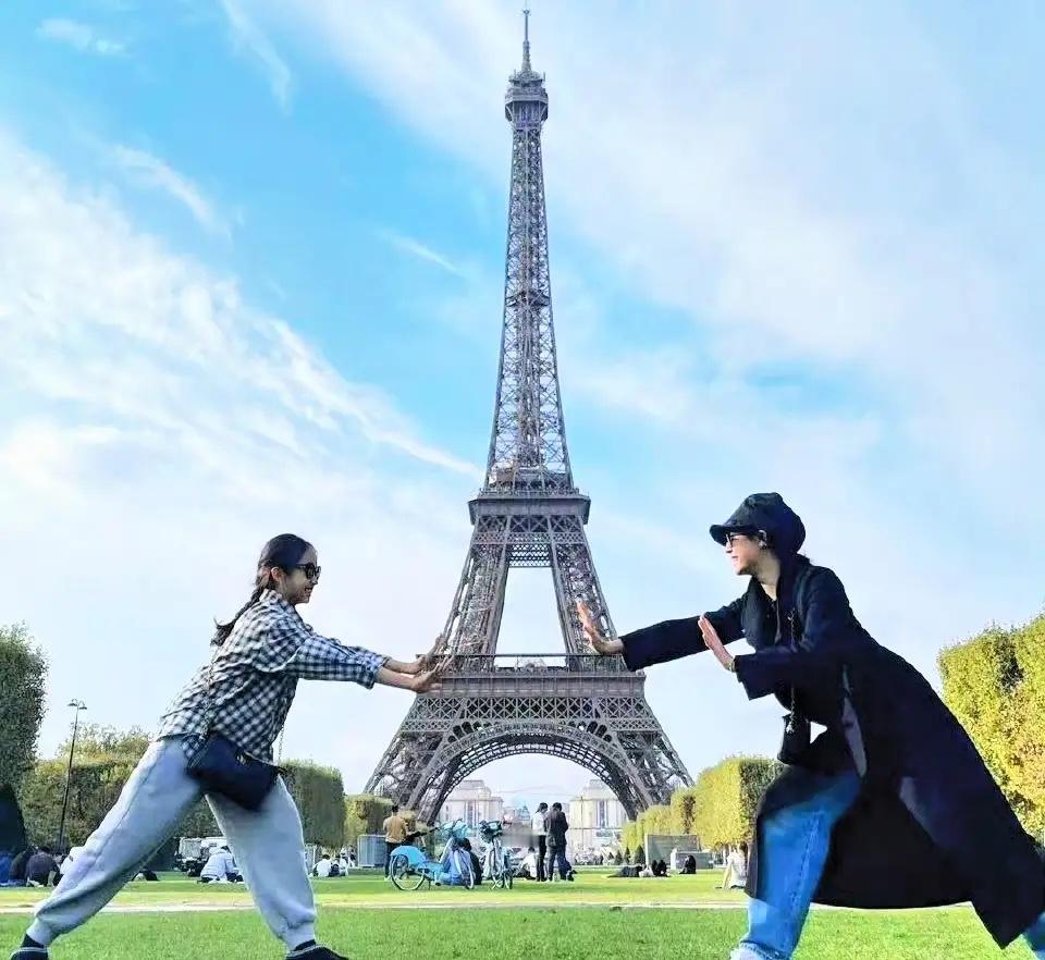 孙俪带女儿打卡巴黎铁塔,母女俩好活泼,简直像两姐妹!有一说一,孙俪真的啥都没耽误