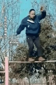 锻炼身体就好好锻炼身体,没必要整一些花样子,这些花样子对锻炼身体也起不到太好的作用,弄不好的话,反而还容易伤着自己,画面上的这个人,就是深受其害,这下子摔得真不轻,从这么高的地方上掉下来,人的身体根本就吃不消的,看他落地后的表情,肯定是受伤了,具体伤到什么程度,只有他自己最清楚,希望能吸取这次教训,以后不要玩花样了!