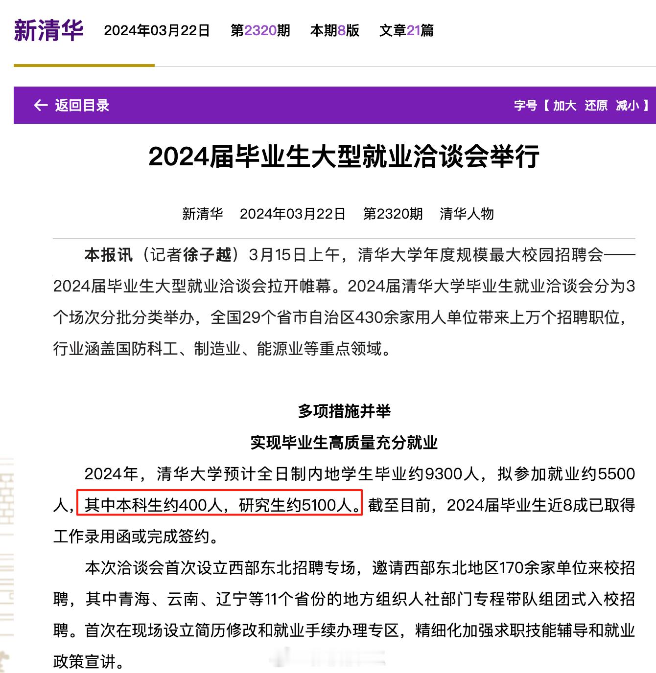 追觅科技成清华最大就业单位 目标招1000人,据称已经签约700人。这个规模非常大了,因为根据清华官网消息:2024年就业总共才5500人。这么一算,1000人大概就是近20%的比例了!