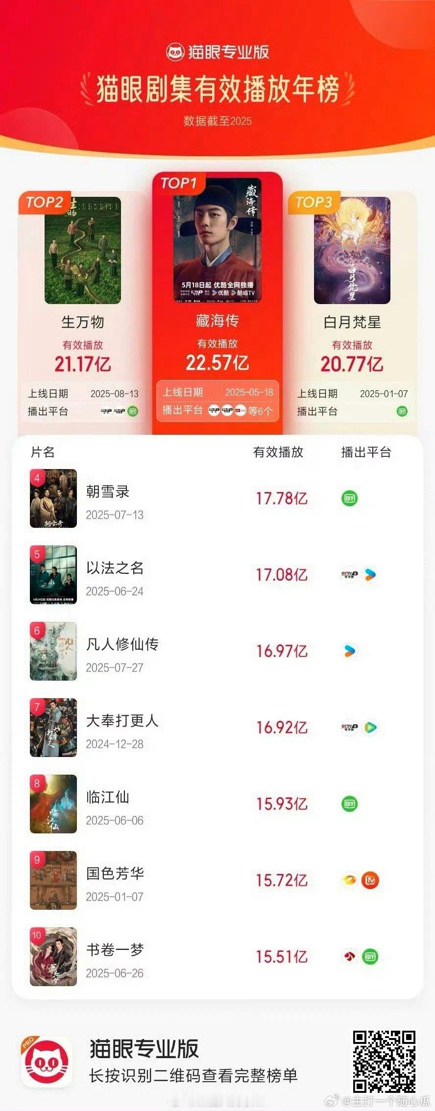 肖战 《藏海传》无论是热度还是播放量,全平台总榜第一☝️是官方出战报、官方认证的火遍全球的大爆剧!也是观众认可的文化符号、国剧之光!