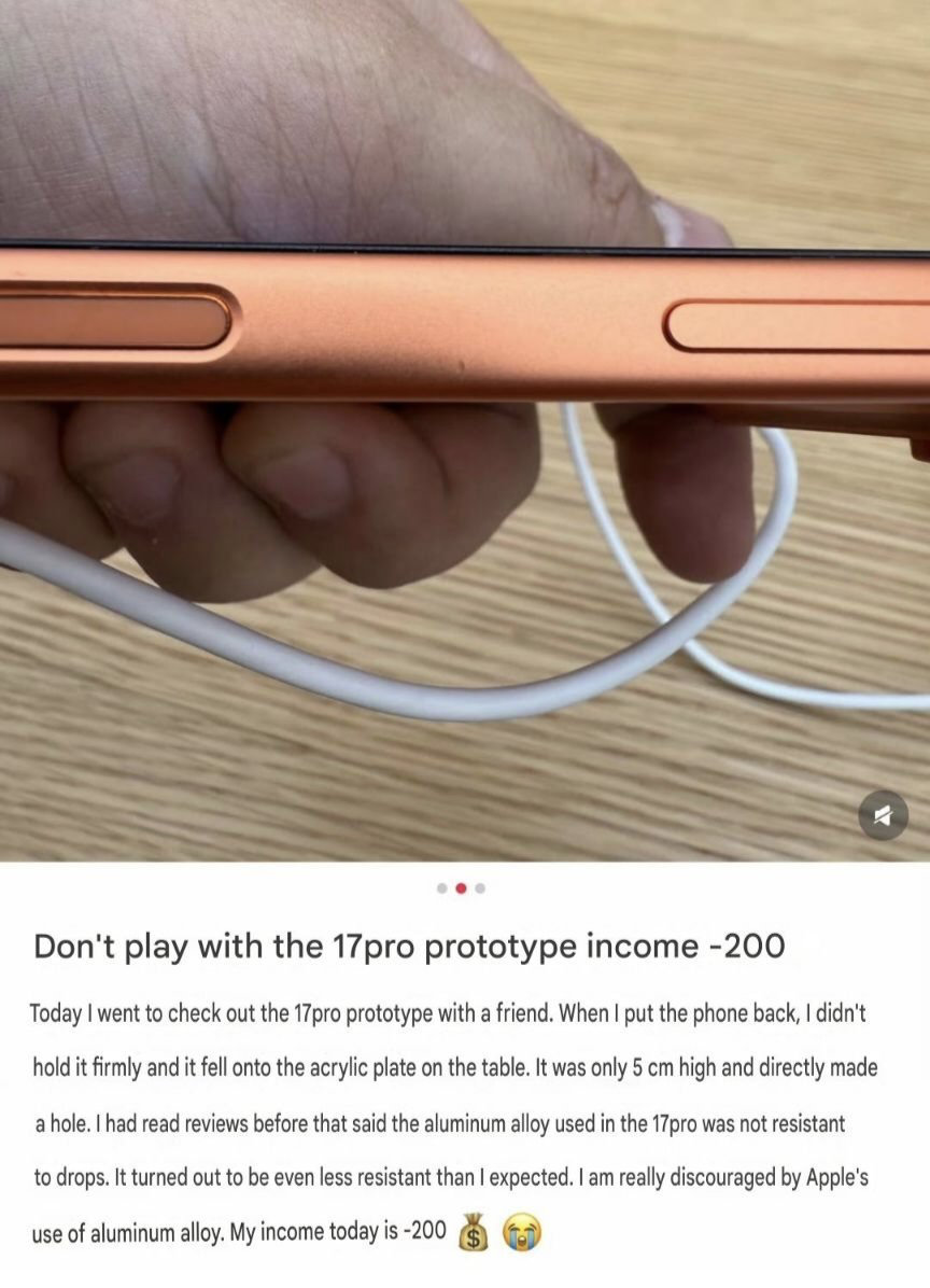 授权店铺玩iPhone 17 Pro摔个坑赔200……