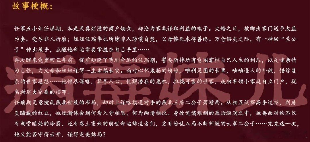 何与、包上恩《嫡谋》故事梗概、人物小传原著ip热度还挺高的吧[污][污]