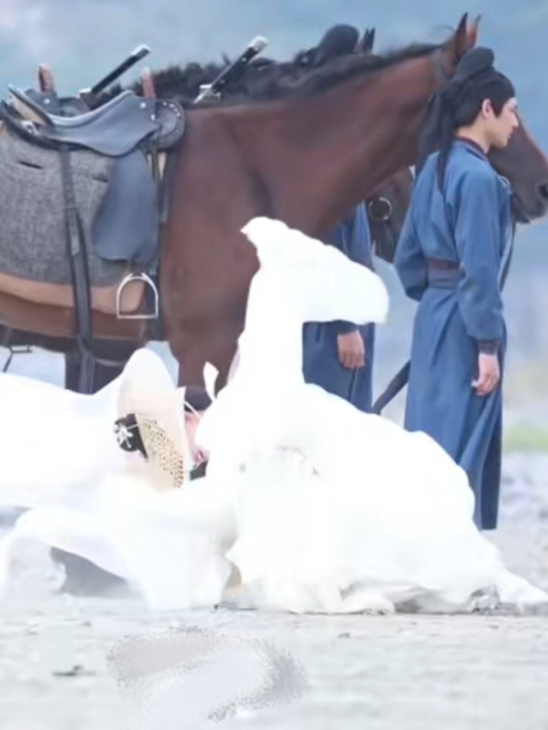 孟子义拍戏摔了孟子义在拍摄古装剧《尚公主》时,因同组男演员踩到其帷帽纱巾,导致