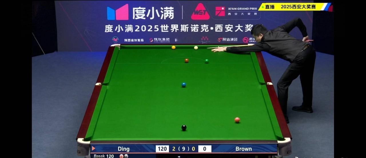 2025斯诺克西安大奖赛64进32轮次,丁俊晖第三局冲击147止步清彩黄球,遗憾