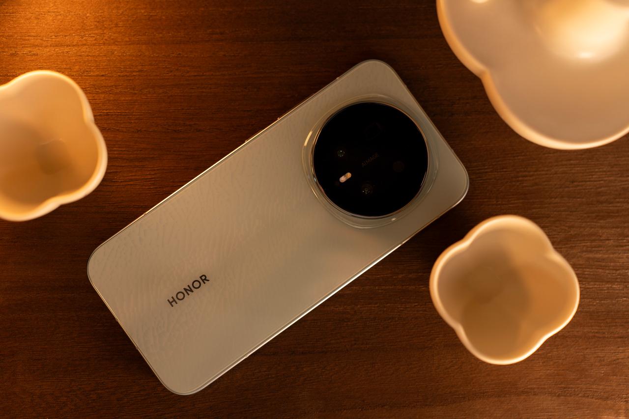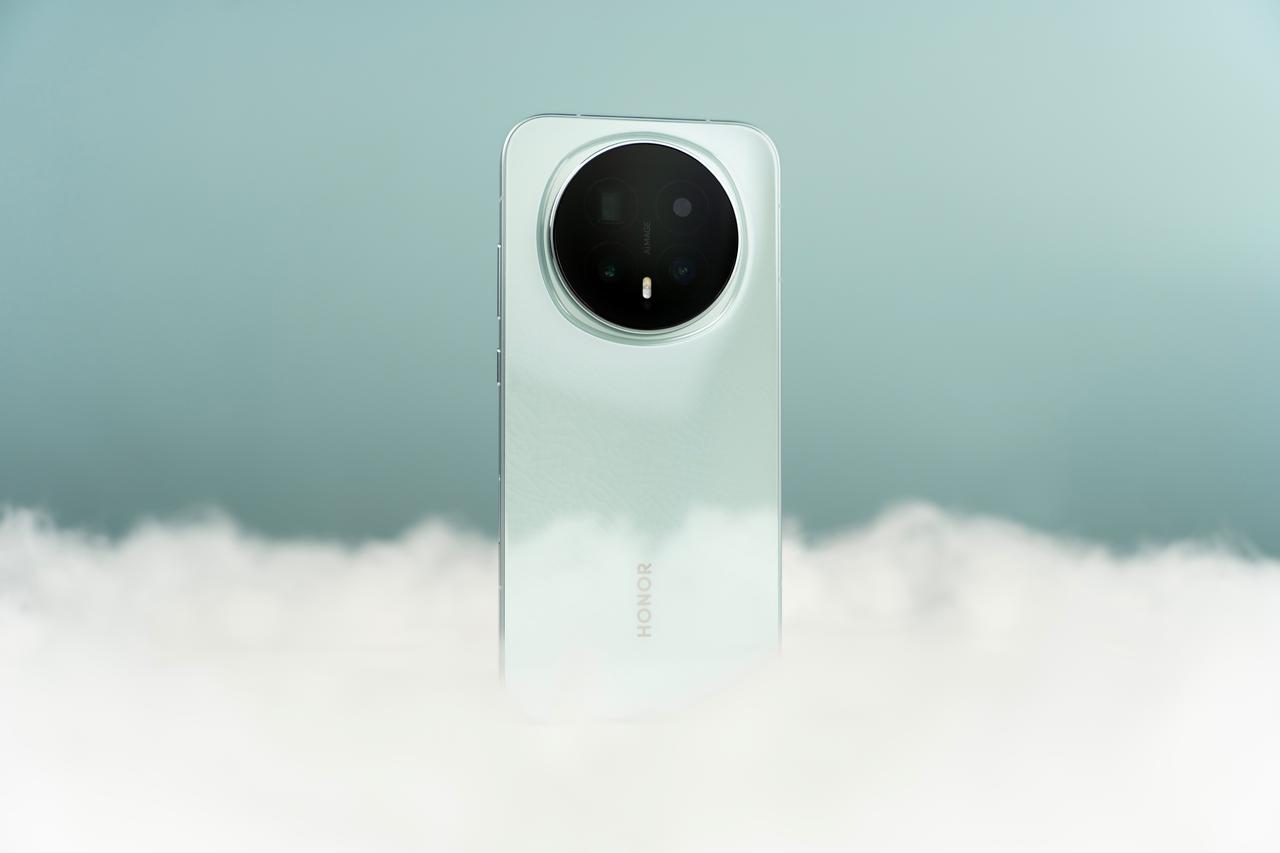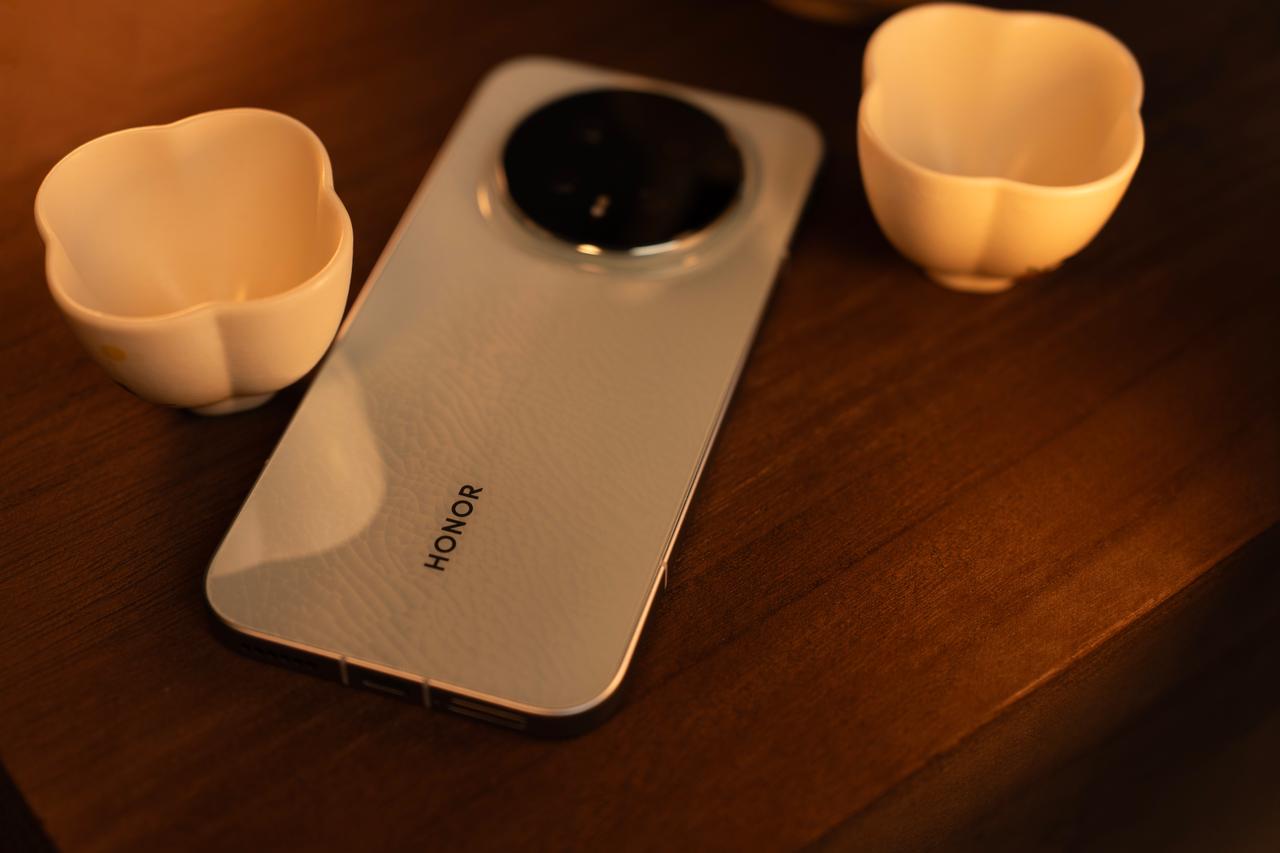 我们给荣耀Magic8标准版拍了一组图,配色名为天青釉,灵感来自宋代汝窑,表面仔