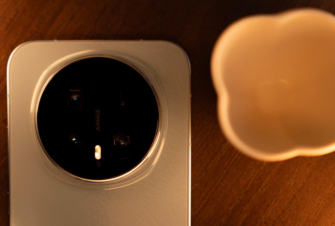 我们给荣耀Magic8标准版拍了一组图,配色名为天青釉,灵感来自宋代汝窑,表面仔细看还有开片釉变的裂纹痕迹,但是实际摸起来是光滑的。