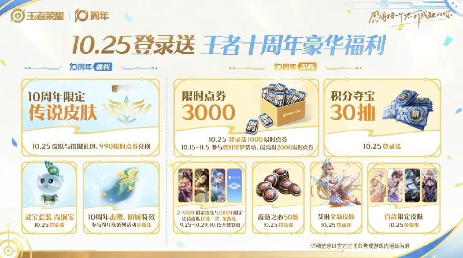 王者十周年福利,小王这回是真的大方啊! 这也太多东西了吧!最少都有一个传说限定